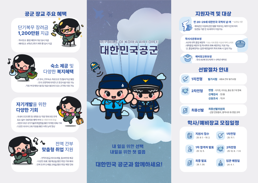 공군 본부에서 제156기 학사 사관 후보생 및 '25-2차 예비 장교 모집을 합니다. 관심있는 학생들은 많은 참여 바랍니다.