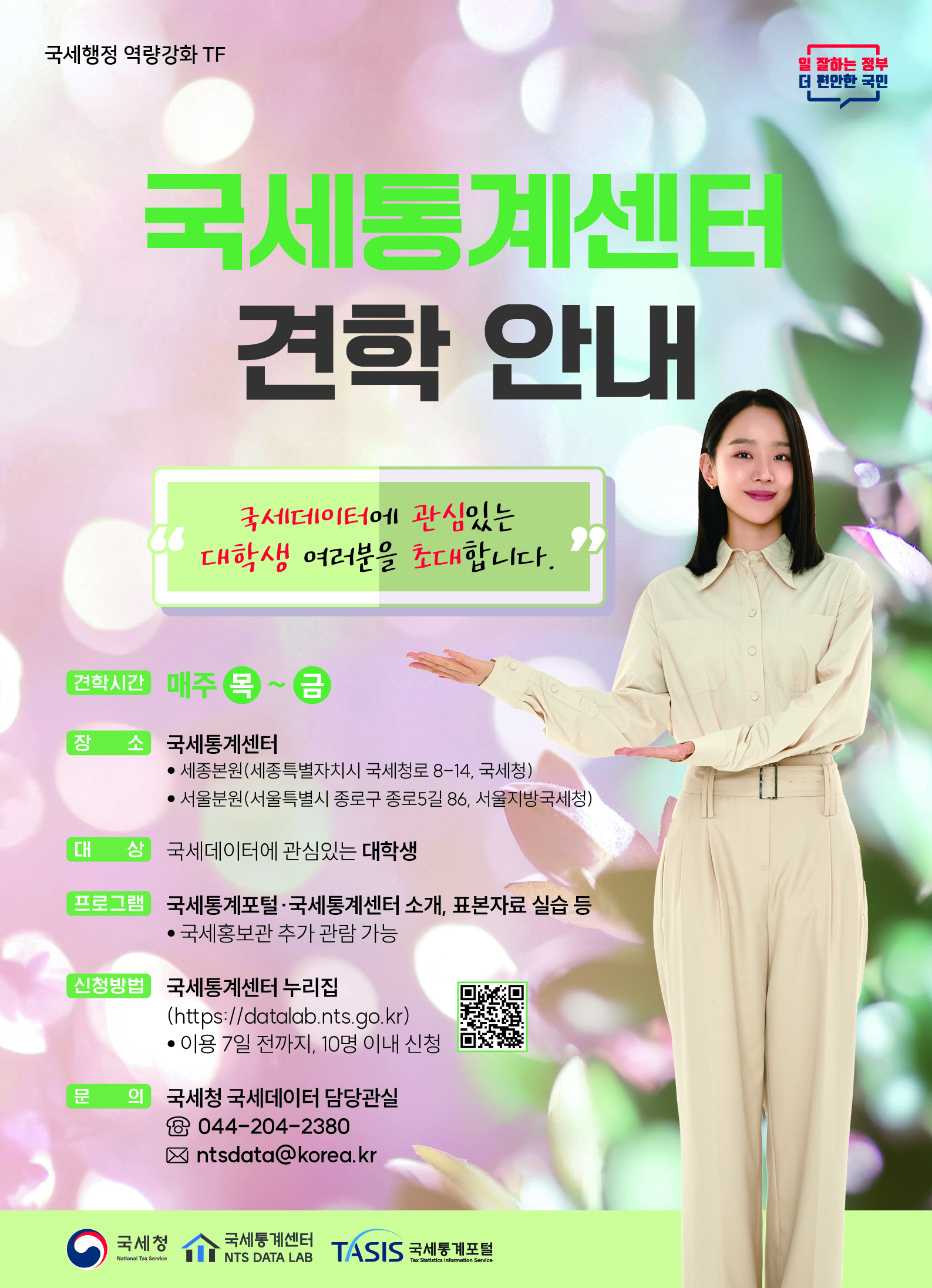 국세청에서 국세통계센터 대학생 견학 프로그램을 운영합니다. 관심있는 학생들은 많은 참여 바랍니다.