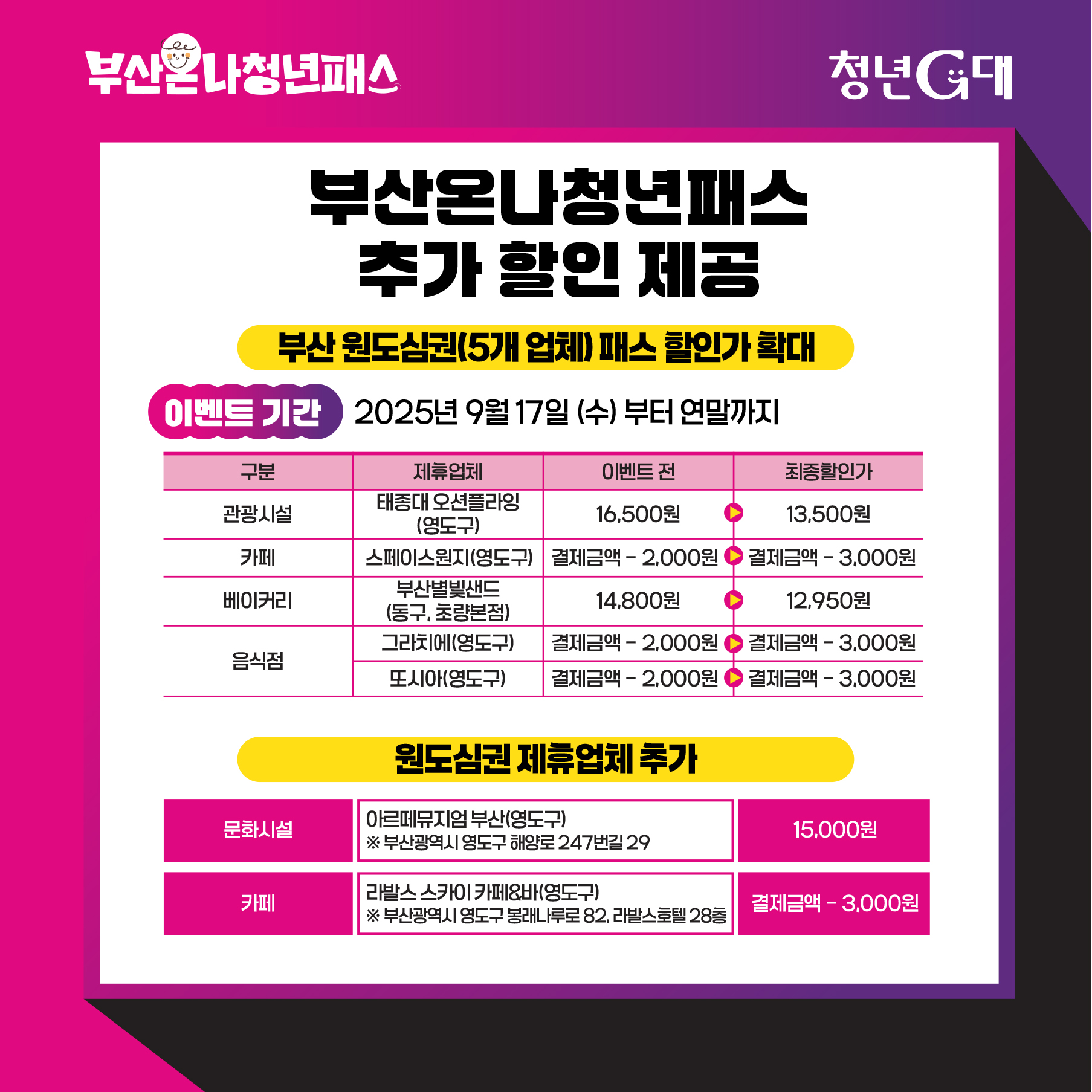 (부산광역시) 「부산온나청년패스」 사업 메가 이벤트 실시 안내