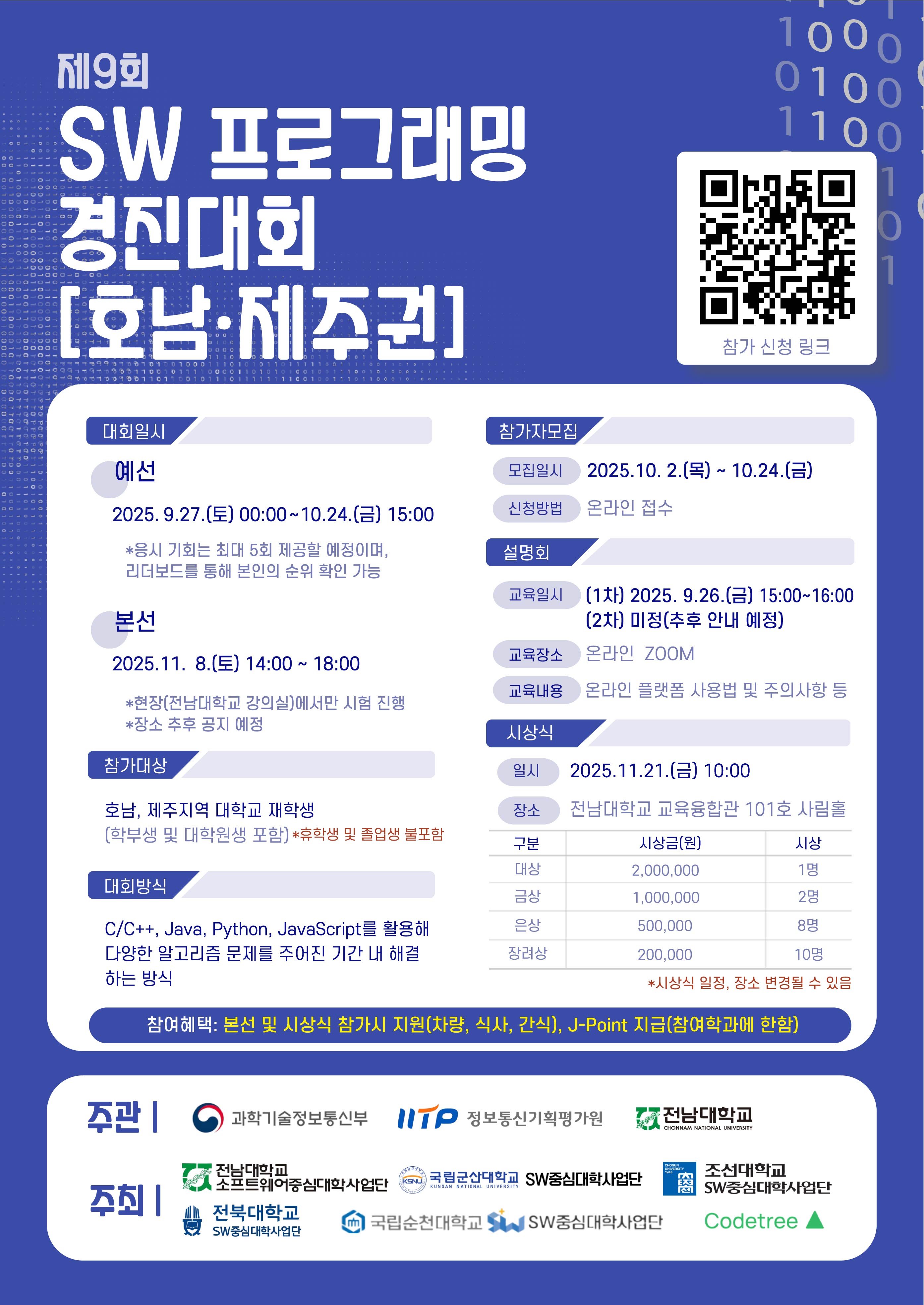 [SW중심대학사업] 제9회 SW 프로그래밍경진대회(호남·제주권) 참가 학생 모집