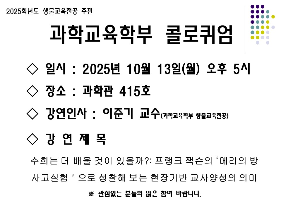 다소 사변적인 제 연구 분야 쪽 학문적인 이야기 보다는 교원양성기관 역할을 하는 사범대학에서 학부생들과 교수님들이 함께 고민해볼만한 이야기를 준비하였습니다.