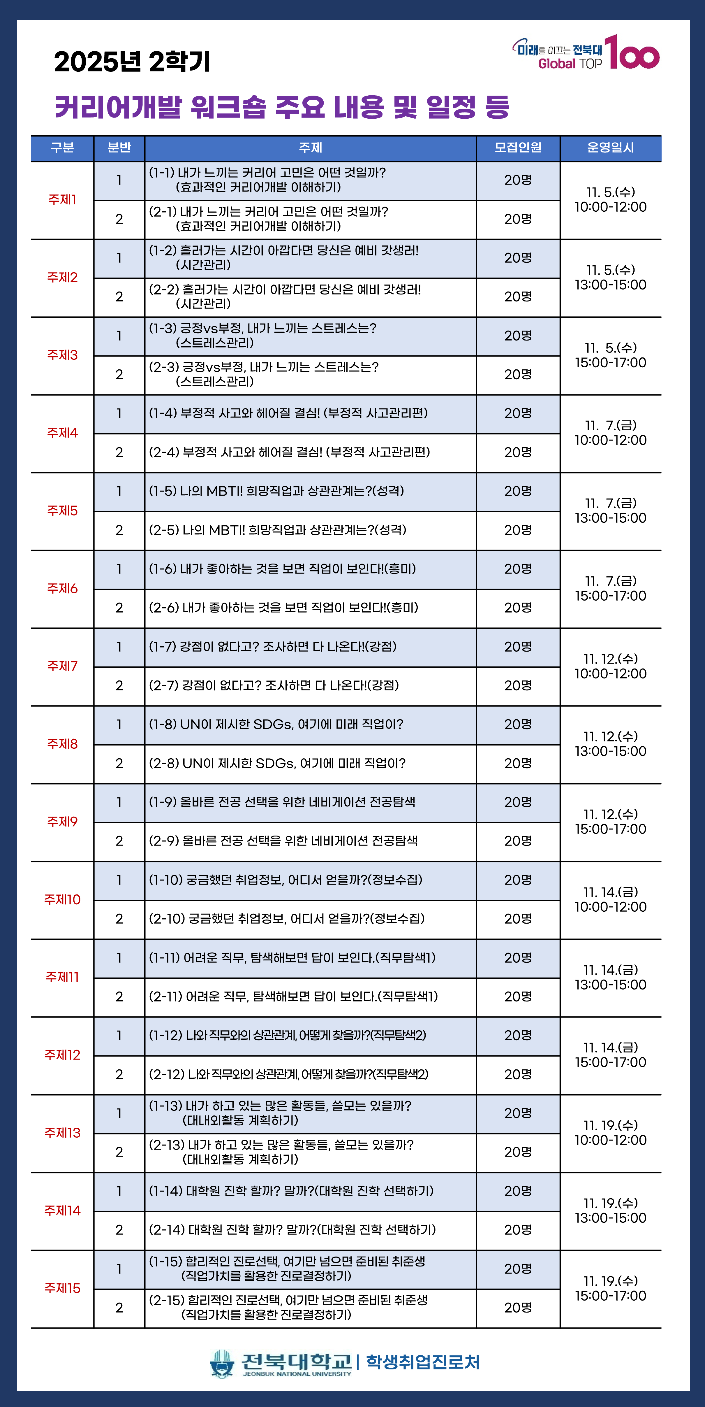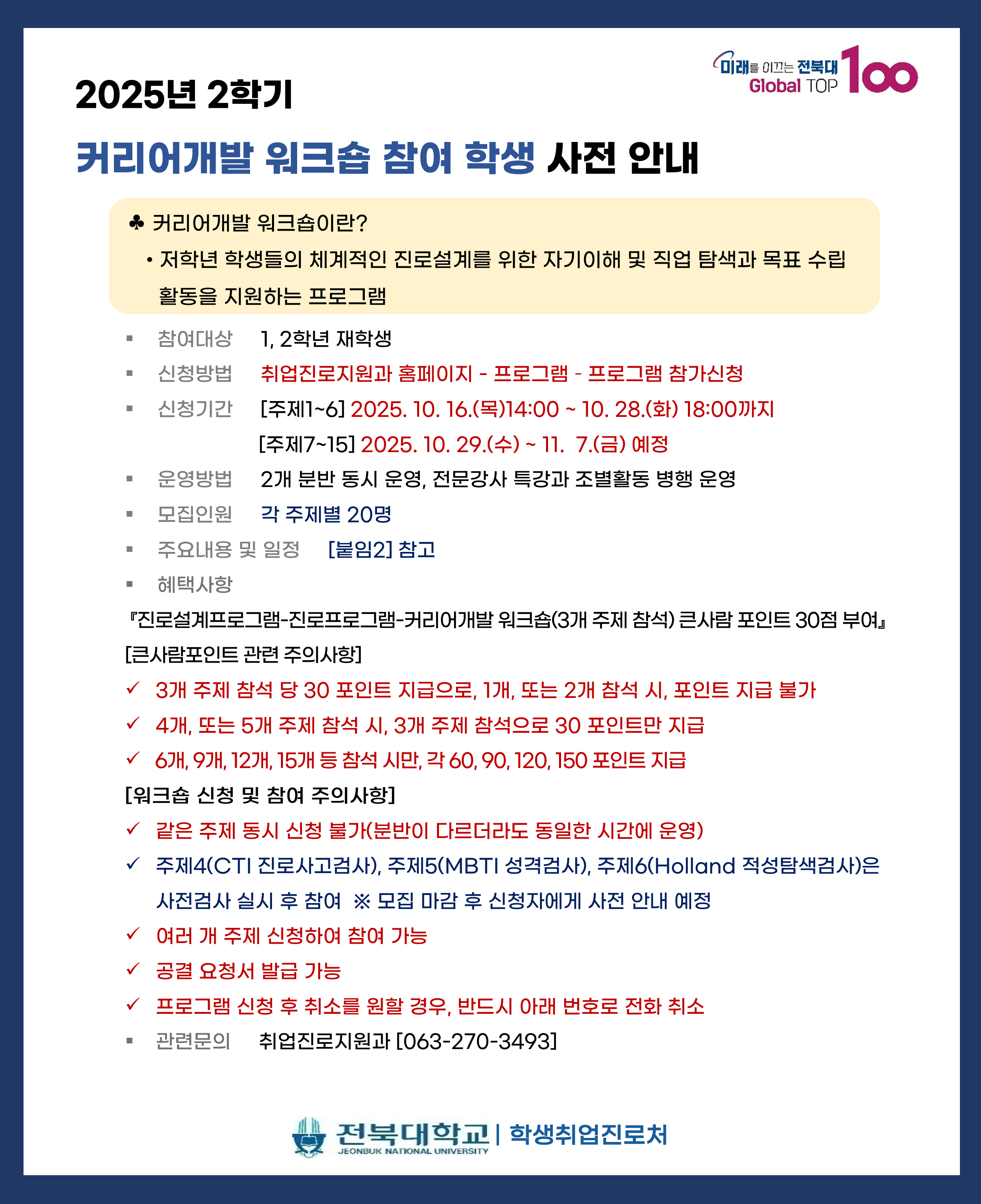 [취업진로지원과] 커리어개발 워크숍 운영 사전 안내