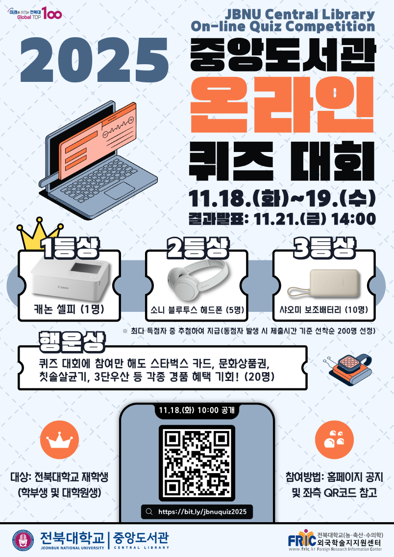 [중앙도서관] 2025년도 중앙도서관 온라인 퀴즈 대회 개최 안내