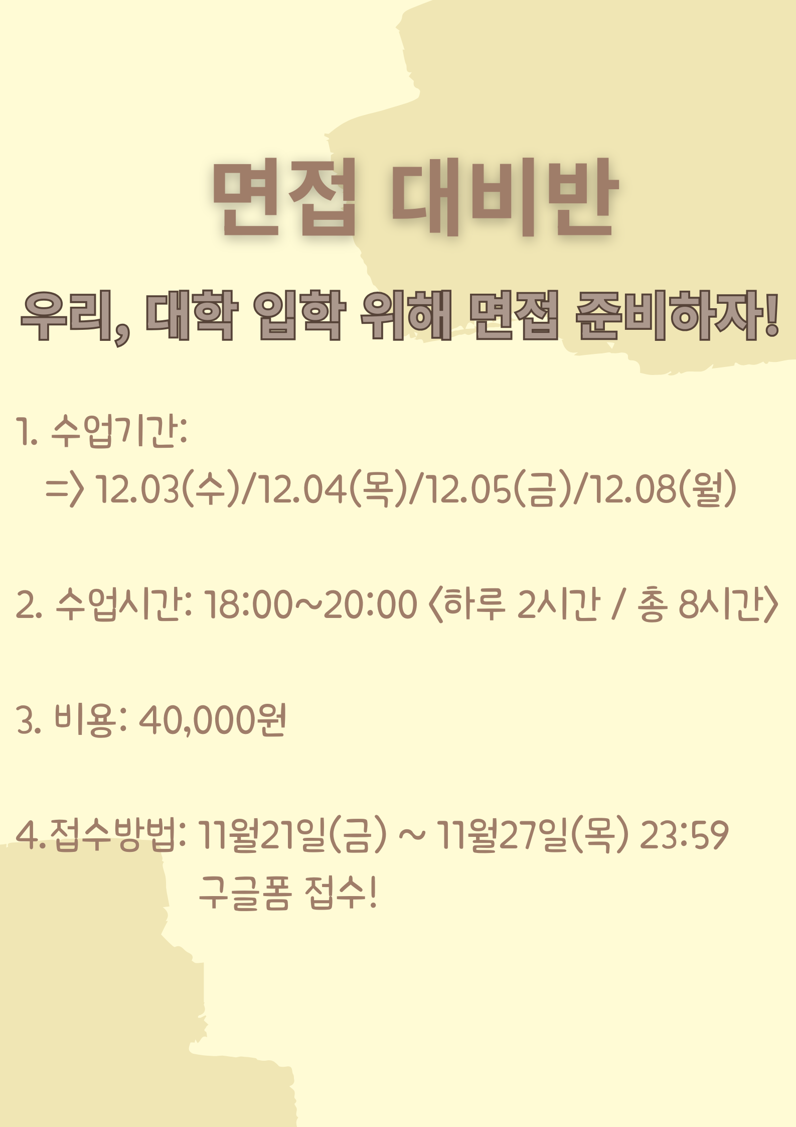○ 신청방법 : 구글폼 https://forms.gle/WV2nD95Zfw6Ps1Xu8 (-> 이거 열리지 않은 경우, 063-270-3639 / 언어교육부 3층에 문의 주세요!:)