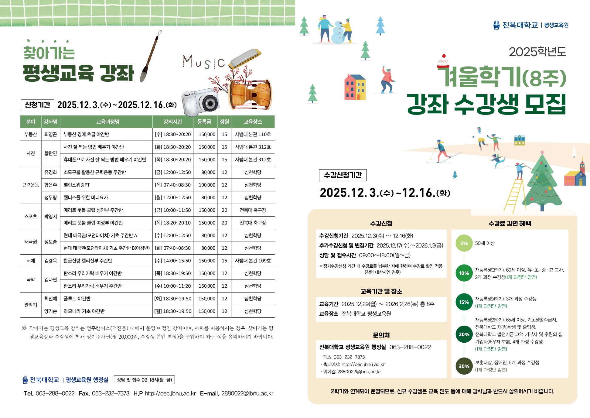 2025학년도 겨울학기 평생교육원 수강생 모집을 붙임과 같이 안내합니다(찾아가는 평생교육강좌 포함).