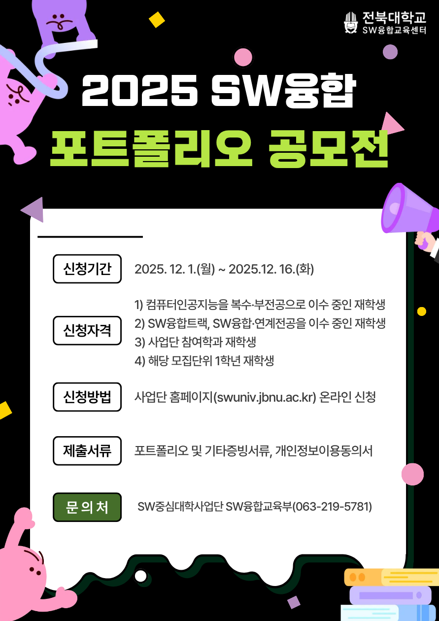 [SW중심대학사업단] 2025 SW융합 포트폴리오 공모전 (오늘까지 접수)