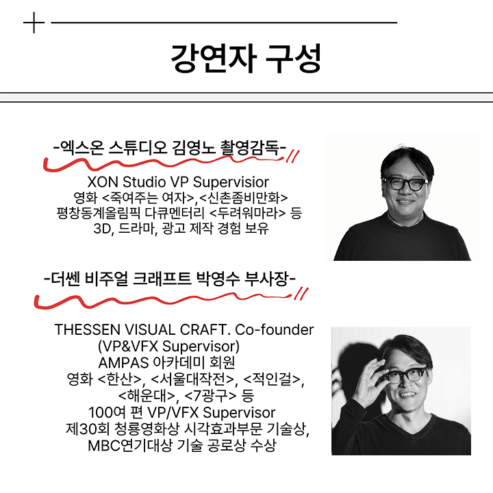- 연사 : 박영수 대표(THESSEN VISUAL CRAFT. Co-Founder / VP & VFX SUPERVISOR)