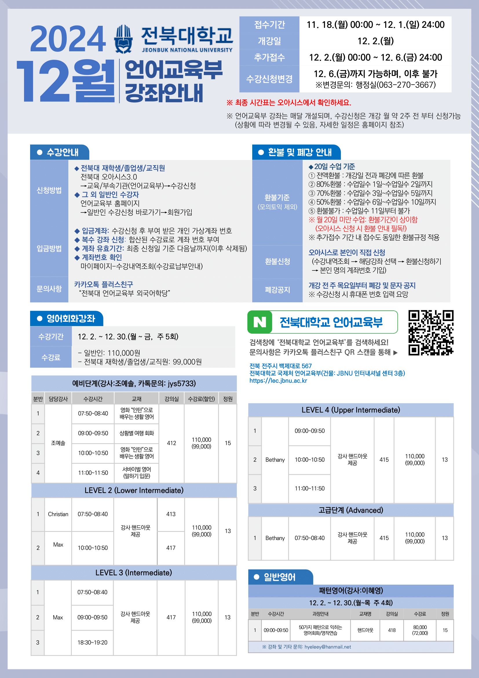 [언어교육부] 12월 외국어 강좌 안내(모의토익 신청방법 붙임 참조)