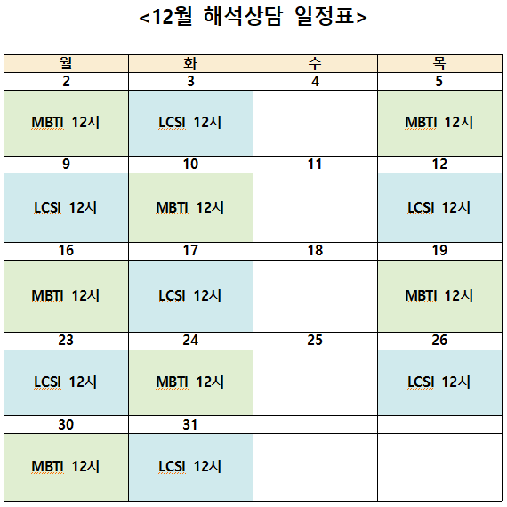 12월 심리검사(인성검사) 신청 안내