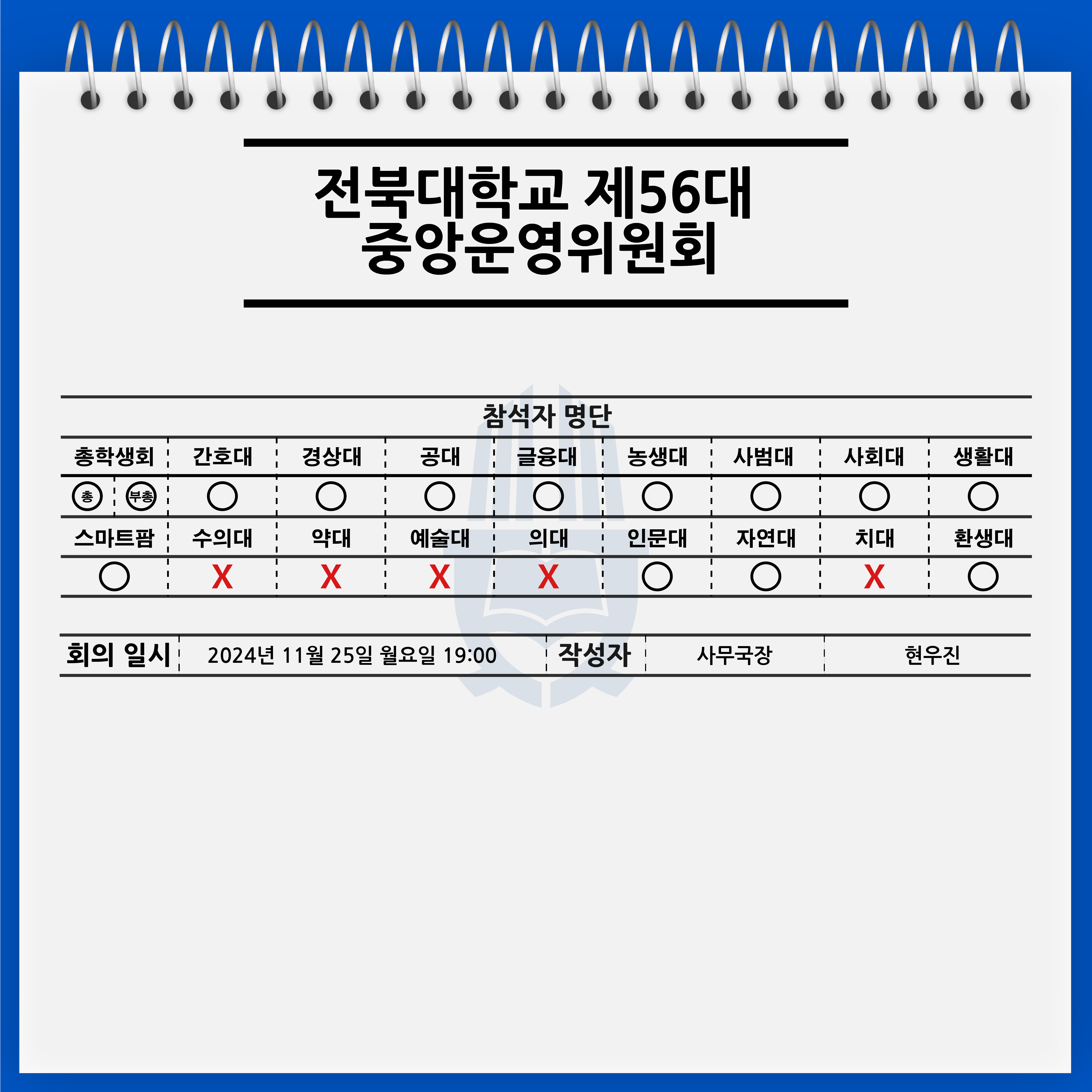 [전북대학교 제56대 중앙운영위원회 18차 회의록]