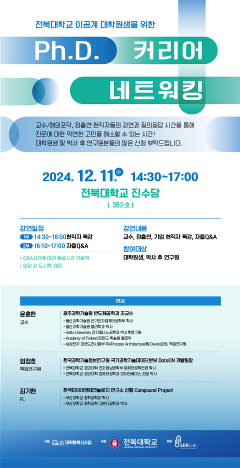 먼저 이공자연계열 대학원생을 위한 특강을 12. 11. (수), 14:30~17:00 진수당 352호에서 진행합니다.