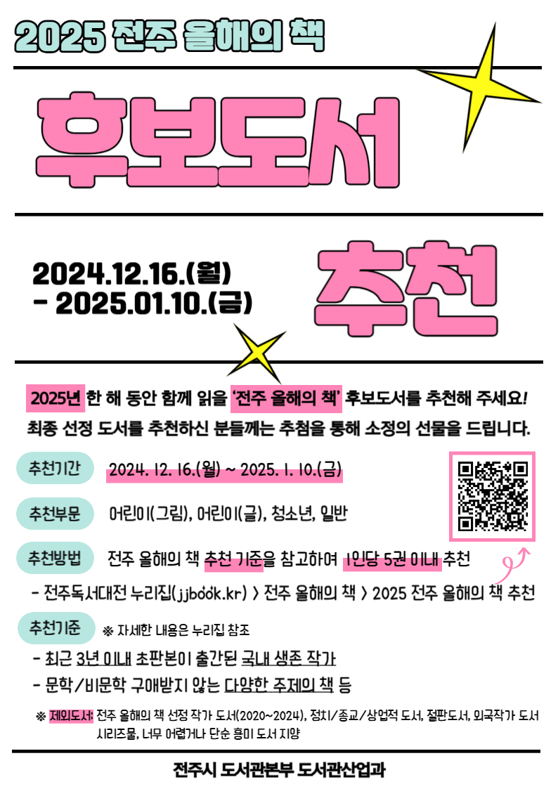 2025년 한 해 동안 함께 읽을 '전주 올해의 책' 후보도서를 추천해 주세요!