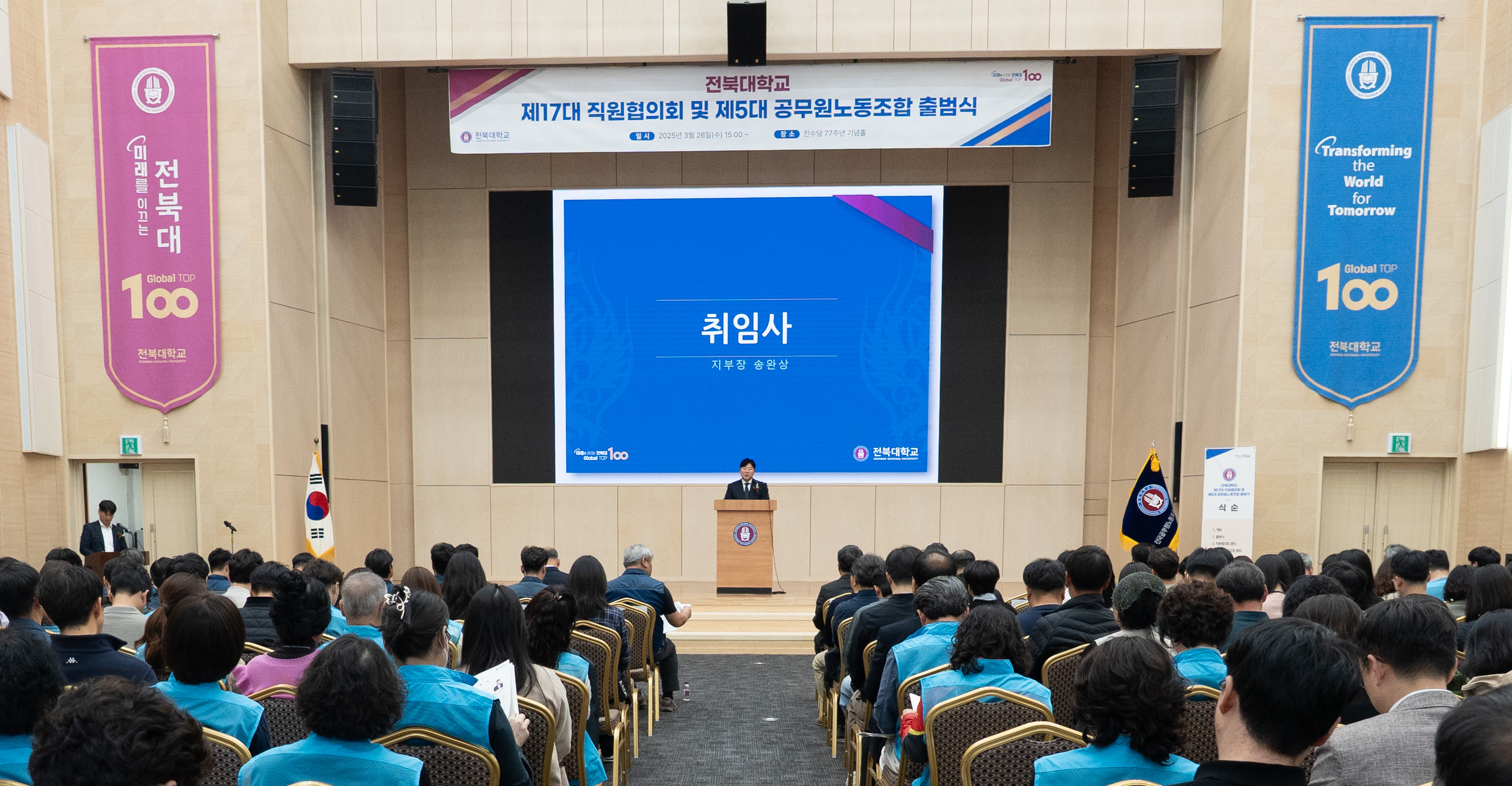 전북대학교 직원 협의체인 제17대 직원협의회와 제5대 공무원 노동조합이 3월 27일 오후 3시 출범식 및 정기총회를 갖고 힘찬 출발을 알렸다.