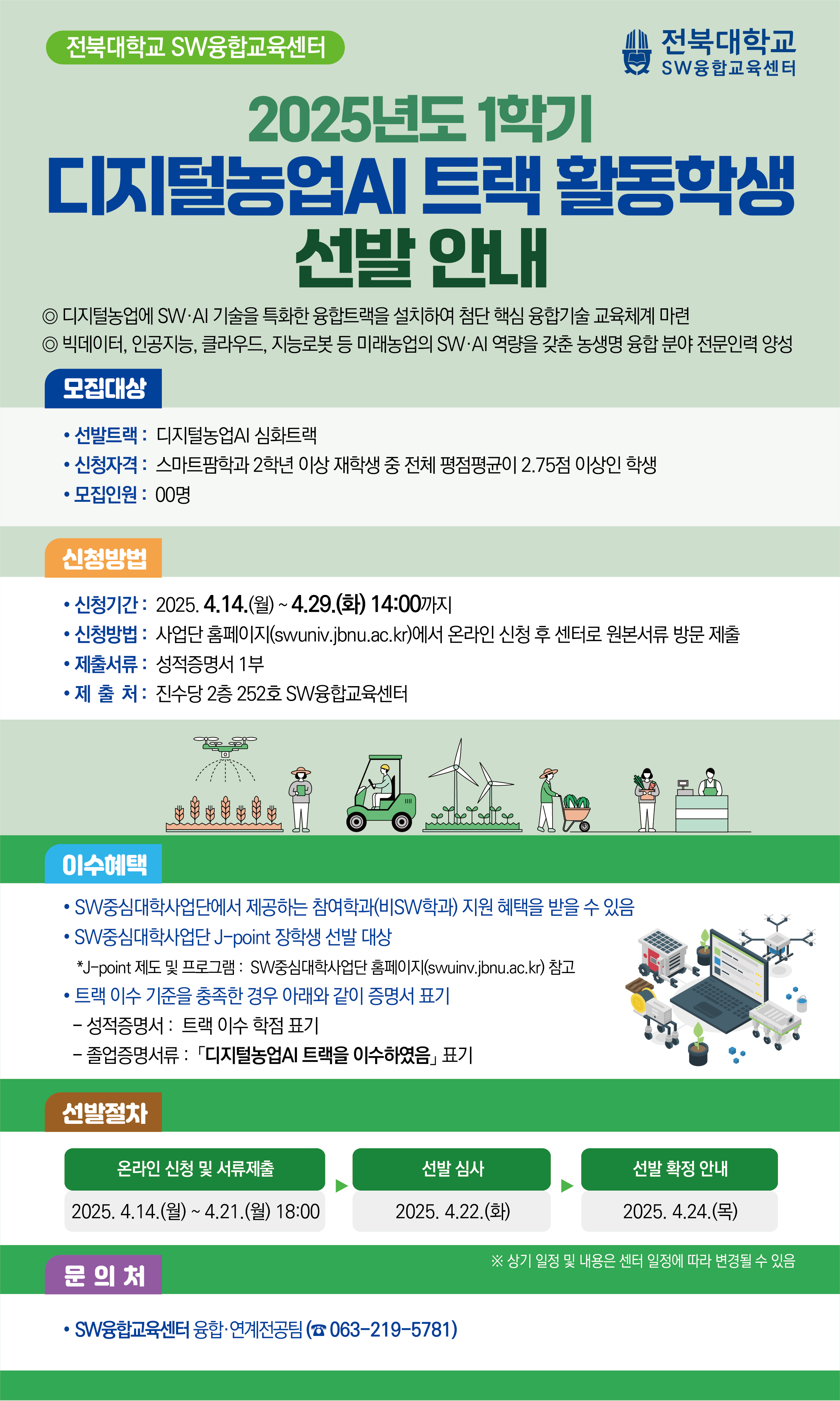 [2025학년도 1학기 디지털농업AI 트랙 이수 학생 선발 안내 (기간연장)]