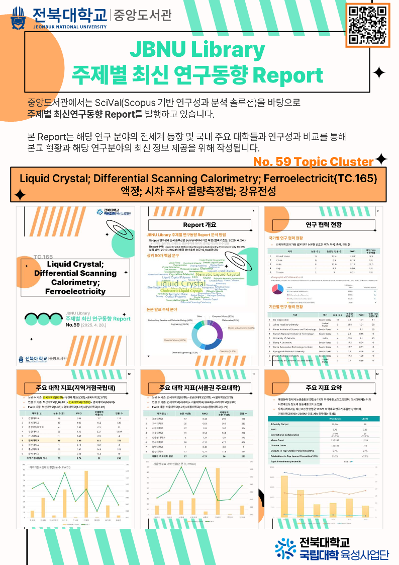 SciVal 이용문의: 중앙도서관 학술연구지원팀 063) 270-4407 / 교육 4408