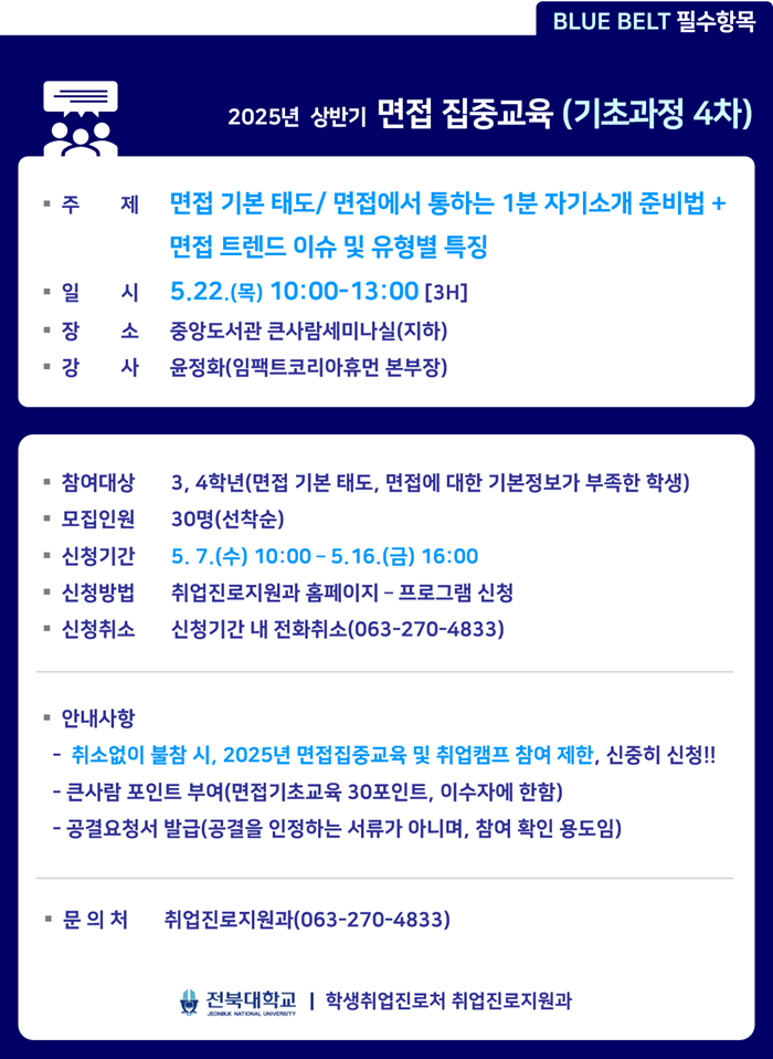[BLUE BELT 필수항목]2025년 상반기 면접 집중교육(★기초과정 4차) 참여자 모집 안내