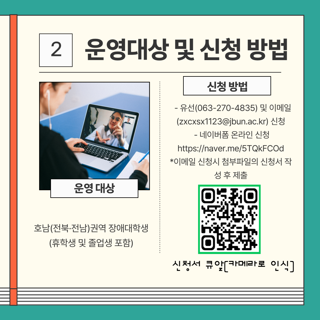 ❍ 운영대상 : 호남(전북·전남)권역 장애대학생(휴학생 및 졸업생 포함)
