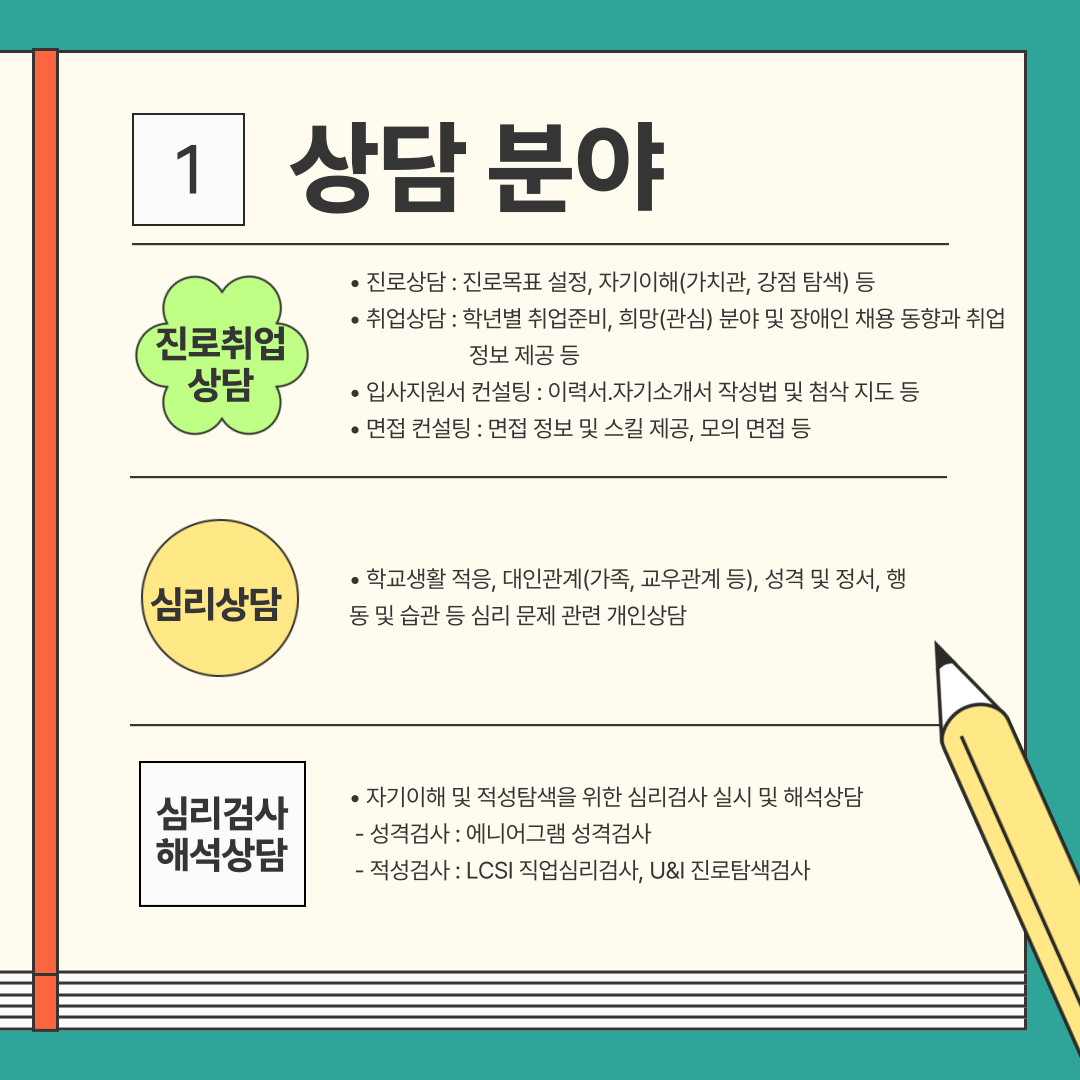 ❍ 상담분야 : 진로취업상담, 심리상담, 심리검사 해석상담