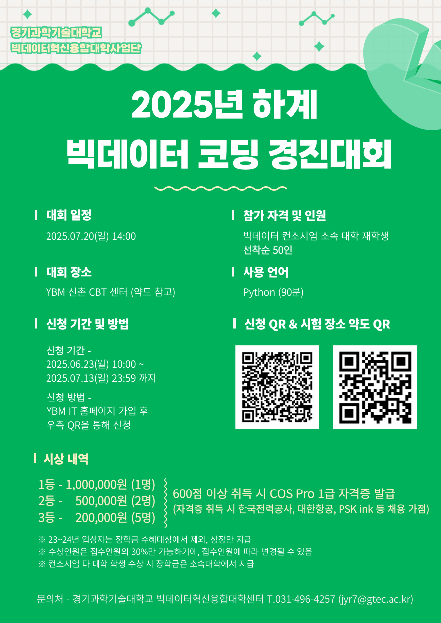 [๋น…๋ฐ์ดํ„ฐ ํ˜์‹ ์œตํ•ฉ๋Œ€ํ•™] ๊ฒฝ๊ธฐ๊ณผํ•™๊ธฐ์ˆ ๋Œ€ 2025 ํ•˜๊ณ„ ๋น…๋ฐ์ดํ„ฐ ์ฝ”๋”ฉ ๊ฒฝ์ง„๋Œ€ํšŒ