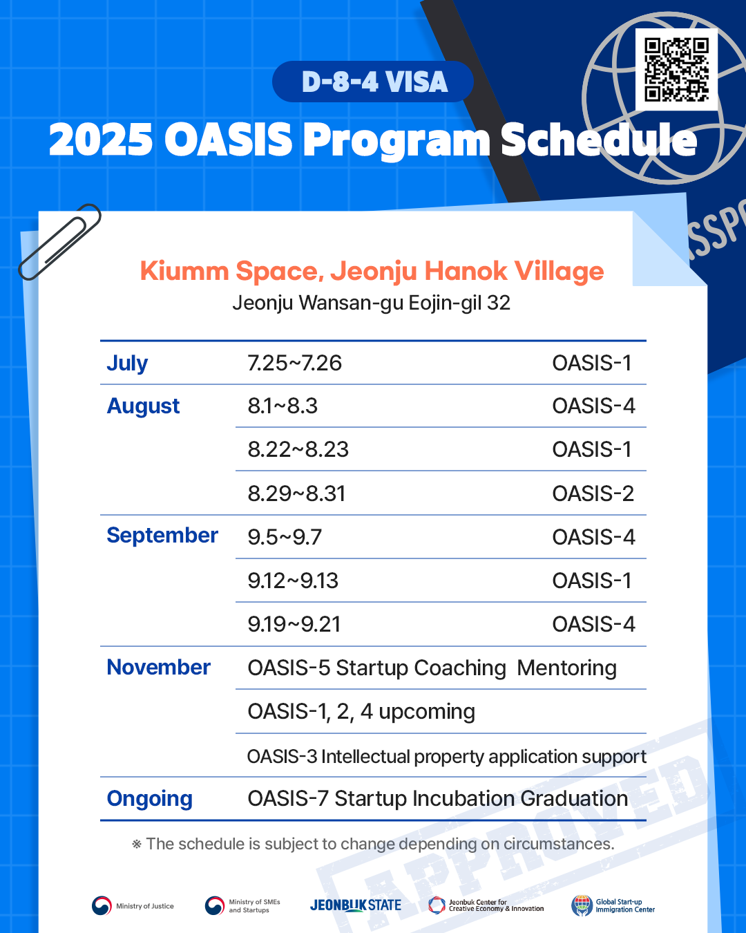 JBGSIC is a joint initiative by the Ministry of SMEs and Startups (MSS), Ministry of Justice (MOJ), Jeonbuk Provincial Government, and JBCCEI. We provide expert support and tailored programs for global entrepreneurs.