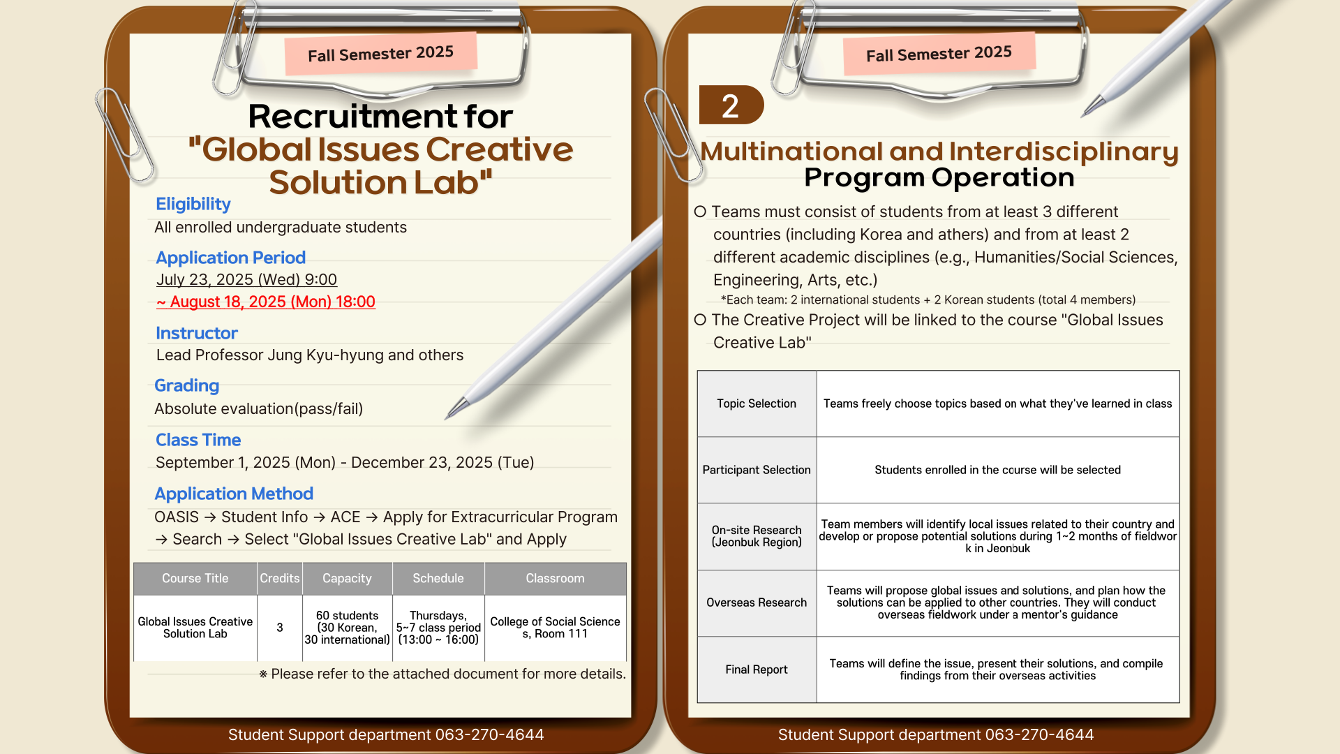 2025학년도 2학기 국제 문제해결 창의프로젝트 수강생 모집을 연장하오니 관심있는 학생들은 신청하여 주시기 바랍니다.