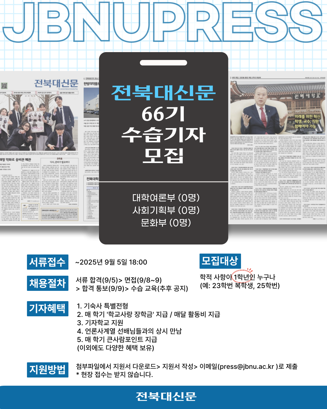 [전북대신문 66기 수습기자 추가 모집]