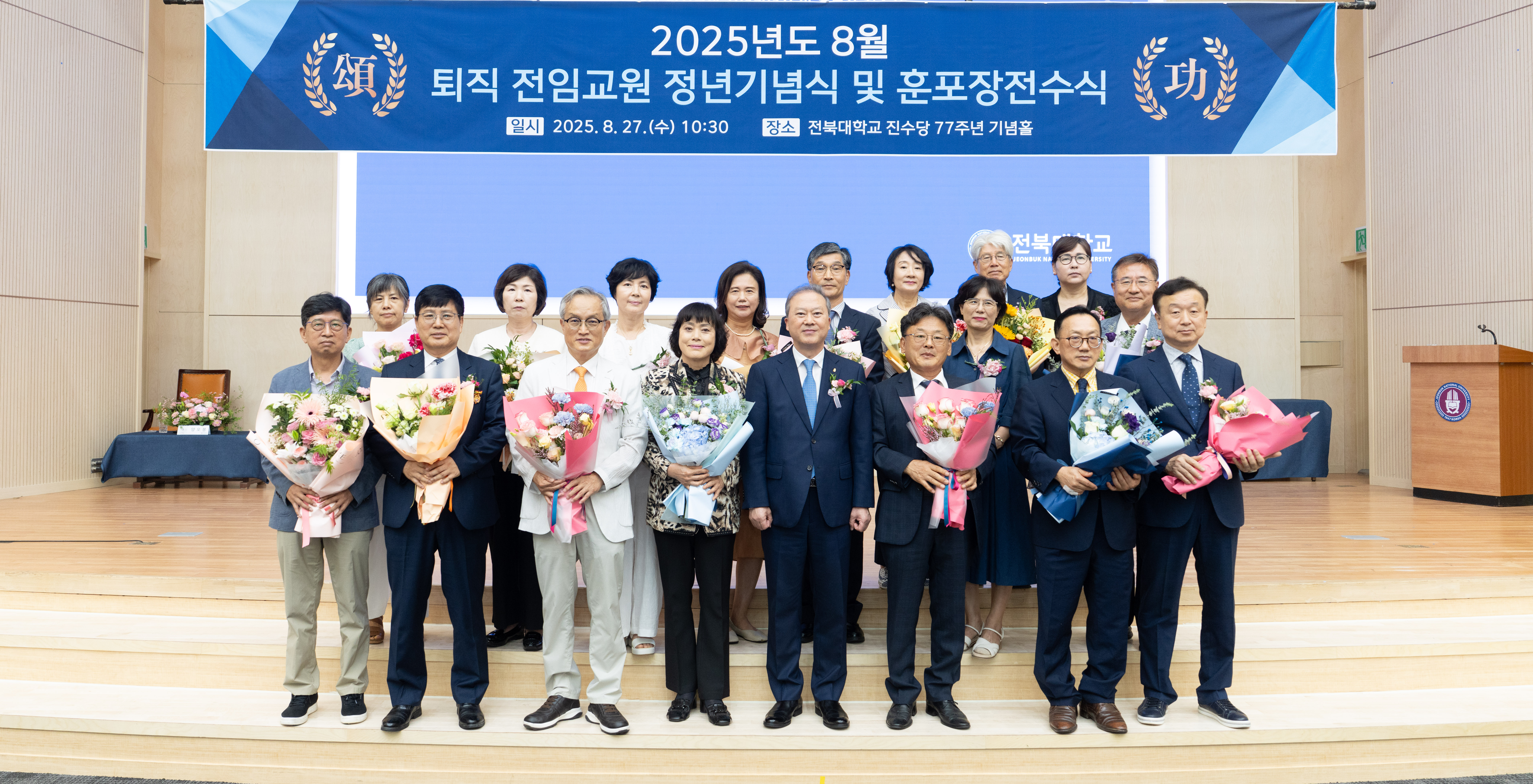 전북대학교가 8월 말로 정년을 맞은 교수들에 대한 정년기념식 및 훈포장 전수식을 8월 27일 오전 10시 30분 진수당 개교77주년 기념홀에서 거행했다.