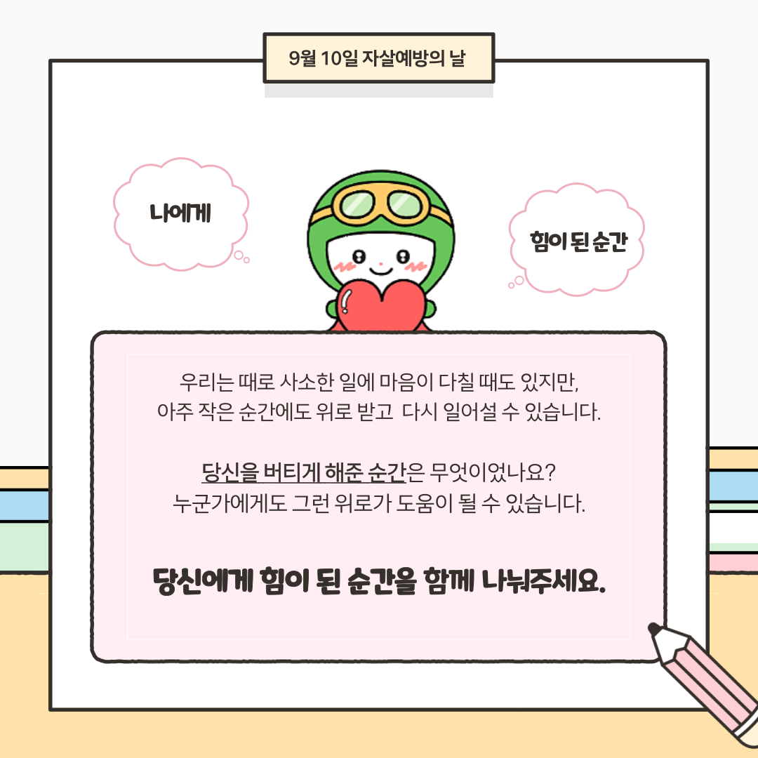 #์„ธ๊ณ„์ž์‚ด์˜ˆ๋ฐฉ์˜๋‚  #9์›”10์ผ #๋‚˜์—๊ฒŒ#ํž˜์ด๋œ์ˆœ๊ฐ„ #์ „์ฃผ์‹œ์ •์‹ ๊ฑด๊ฐ•๋ณต์ง€์„ผํ„ฐ
