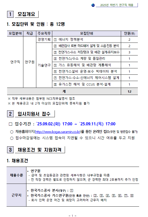 가. 모집기간 : 2025.09.02.~2025.09.11.
