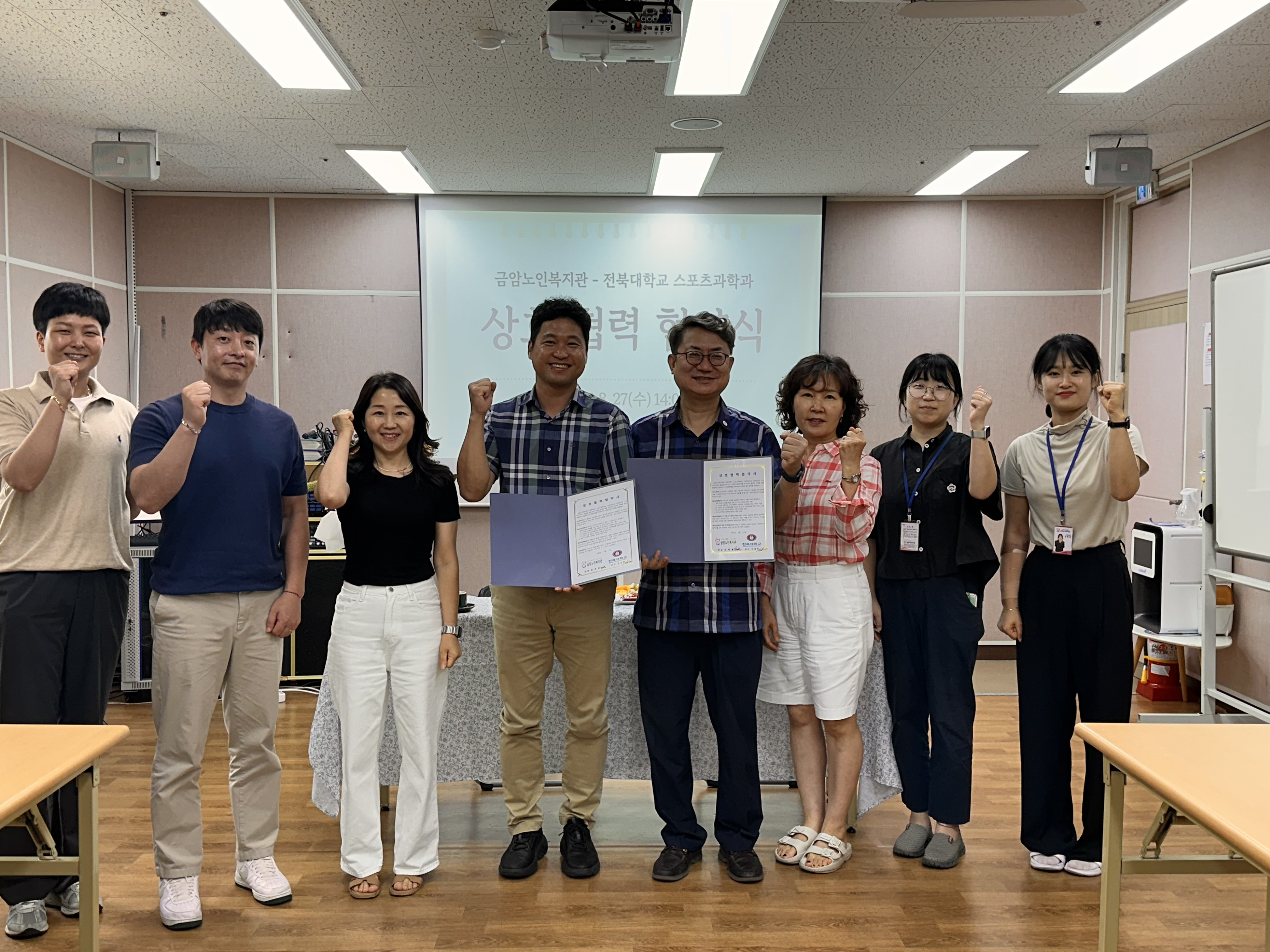 스포츠과학과는 지난 8월 27일 전주금암노인복지관에서 협약식을 열고, 고령사회에 따른 어르신들의 건강 증진과 삶의 질 향상을 지원하는 동시에 학생들에게 현장 실습과 연구 기회를 제공하기로 했다.