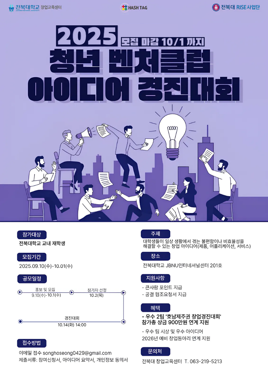 2025년 제8회 청년벤처클럽 아이디어 경진대회 참가자를 모집합니다!! 많은 신청 바랍니다!!