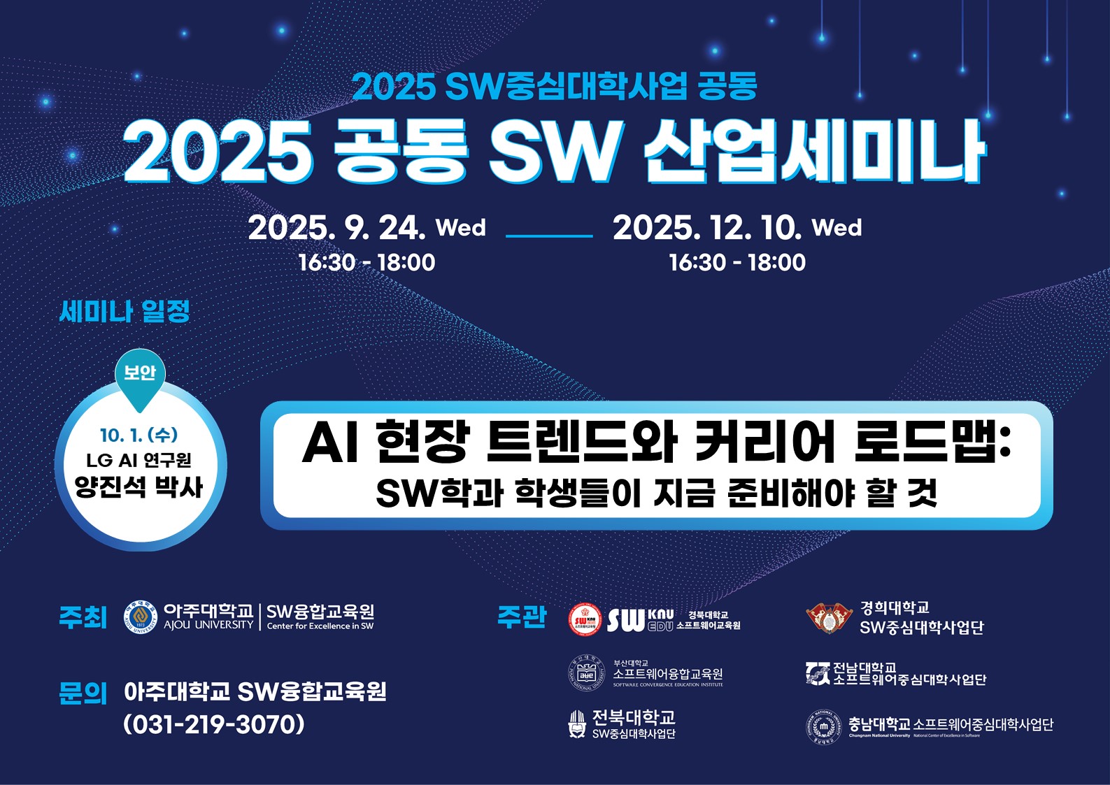 [아주대학교 SW중심대학사업] 2025 SW중심대학 공동 SW산업세미나 2차 학생 모집