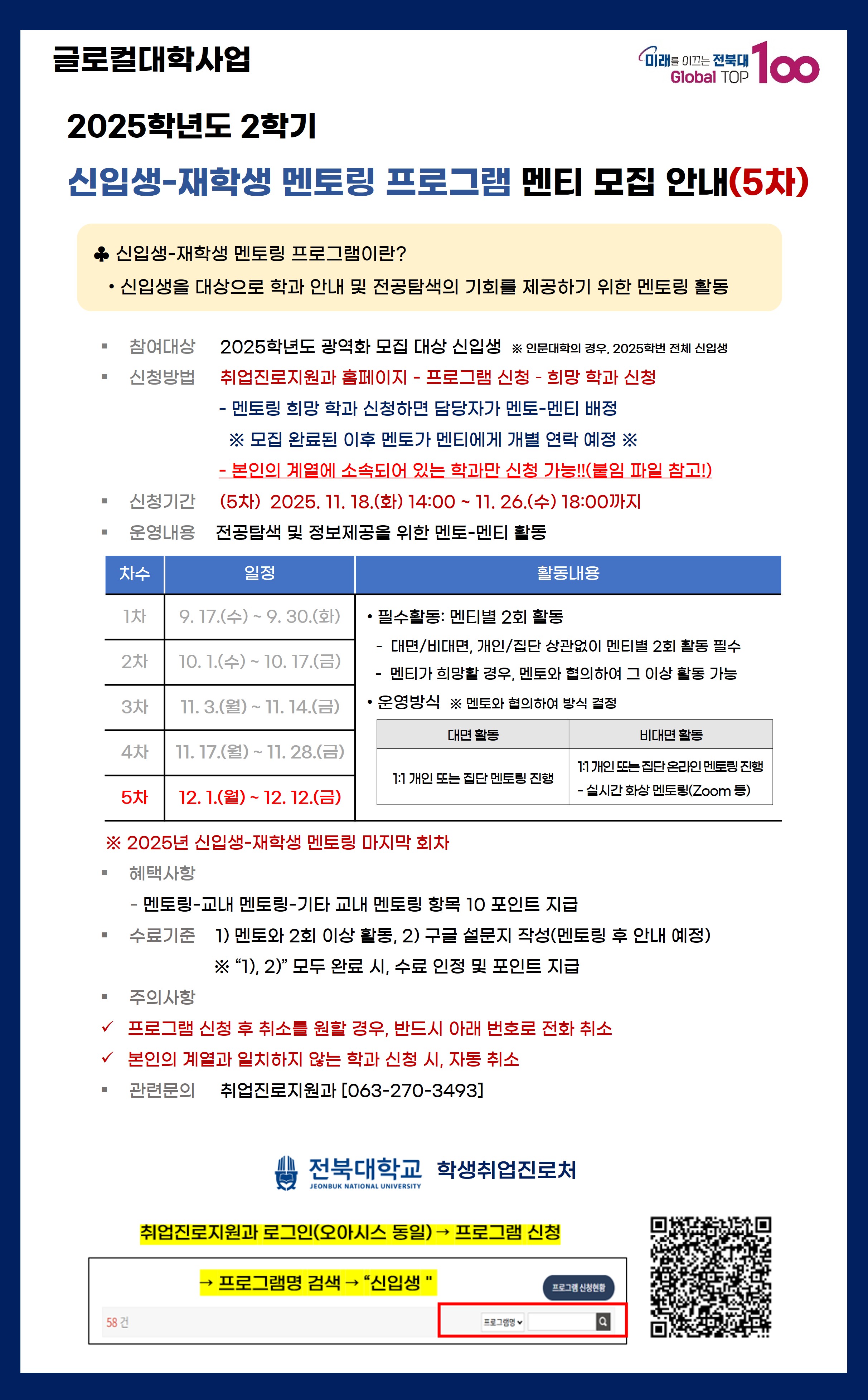 신입생-재학생 멘토링 프로그램 멘티 모집(5차)_이번학기 마지막