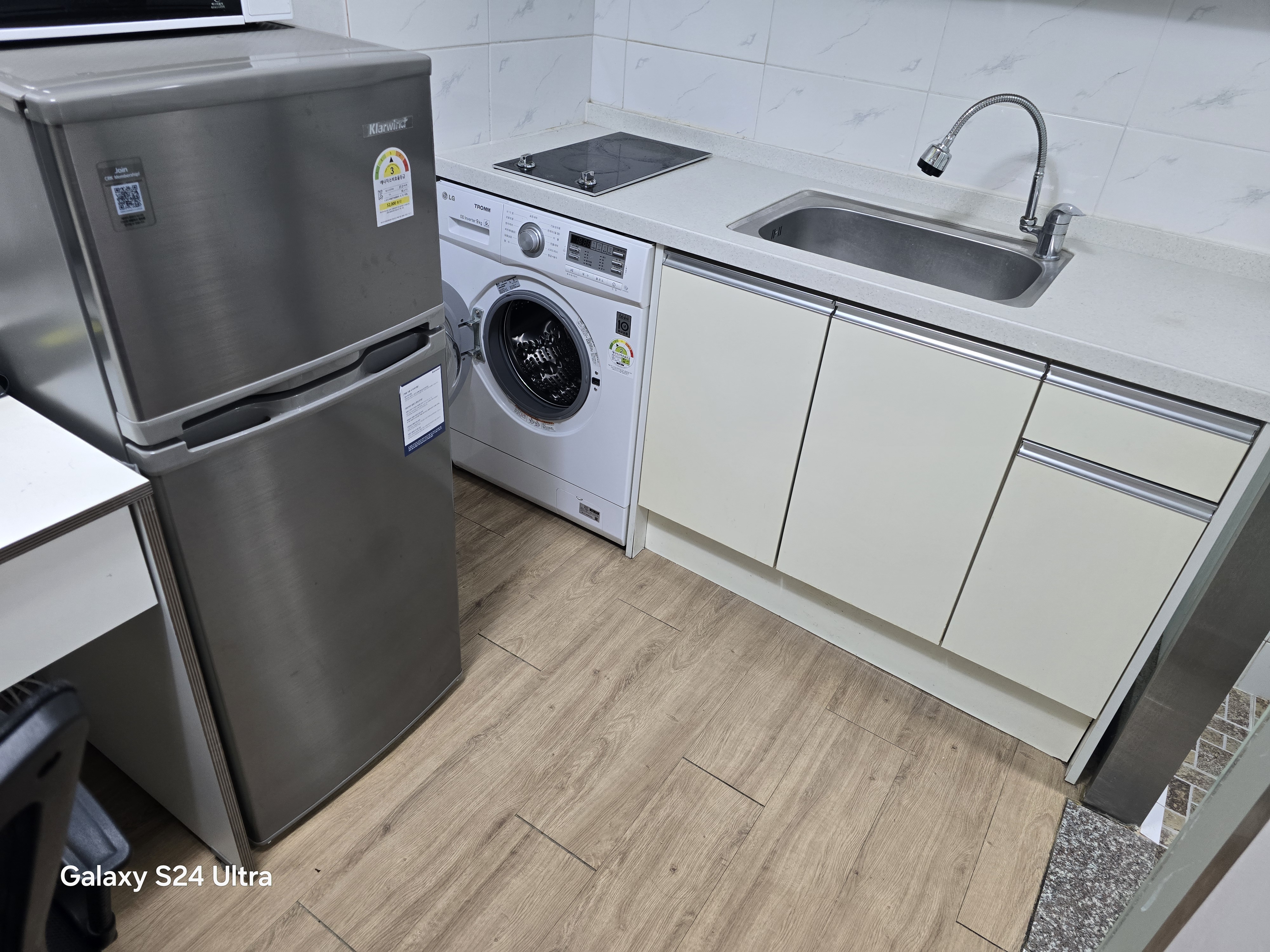풀옵션 : 각 방문 전자번호키. 인터폰. 개인용 세탁기. 에어컨. 싱크대.