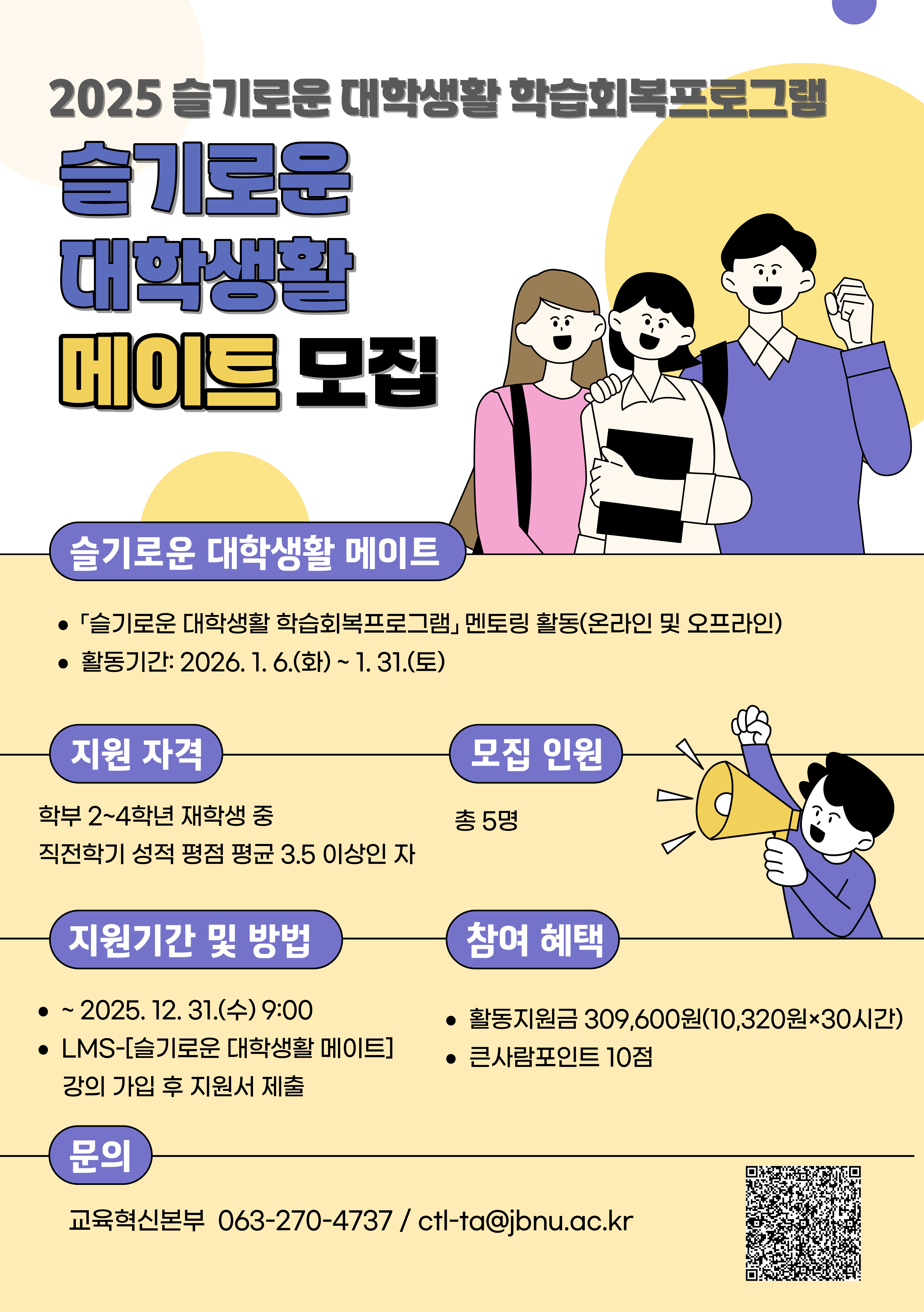 2. 2025학년도 슬기로운 대학생활 메이트 모집 안내 포스터 1부. 끝