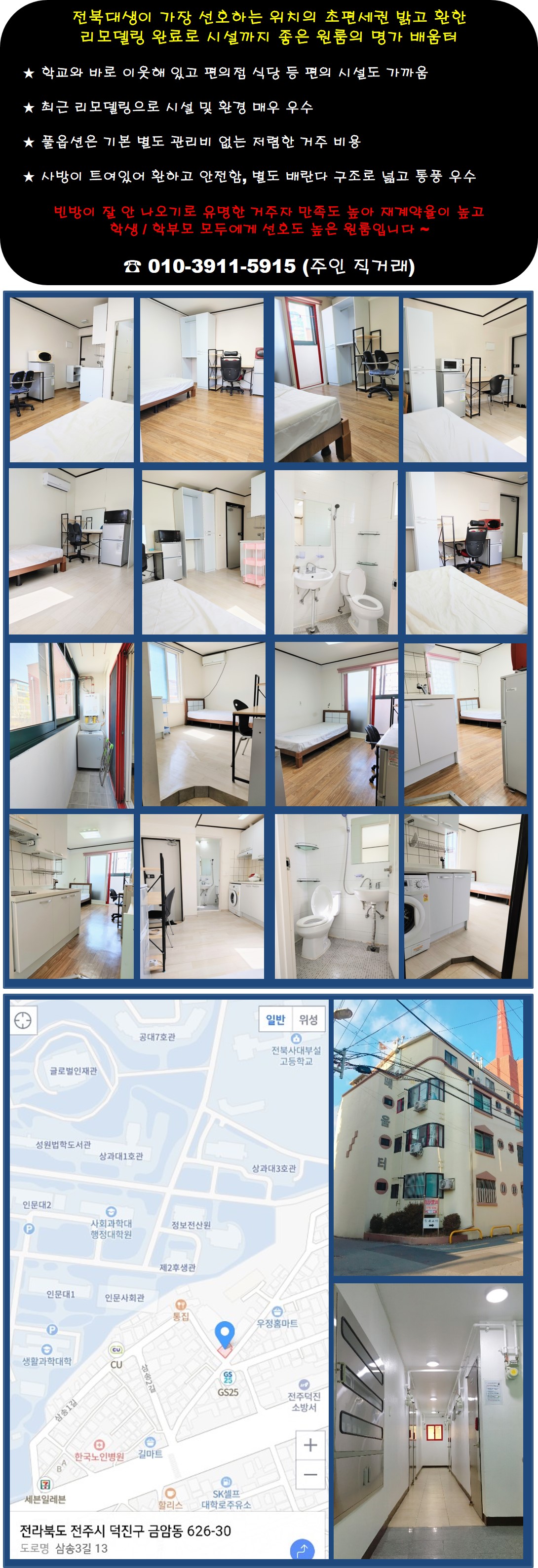 [최고위치 / 인기원룸] 모두가 가장 선호하는 최고 위치에 리모델링된 깔끔하고 편리한 인기 원룸