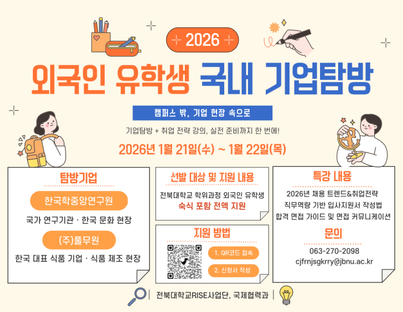 문의: 국제협력과 ☎ 063-270-2098 / ✉️ cjfrnjsgkrry@jbnu.ac.kr