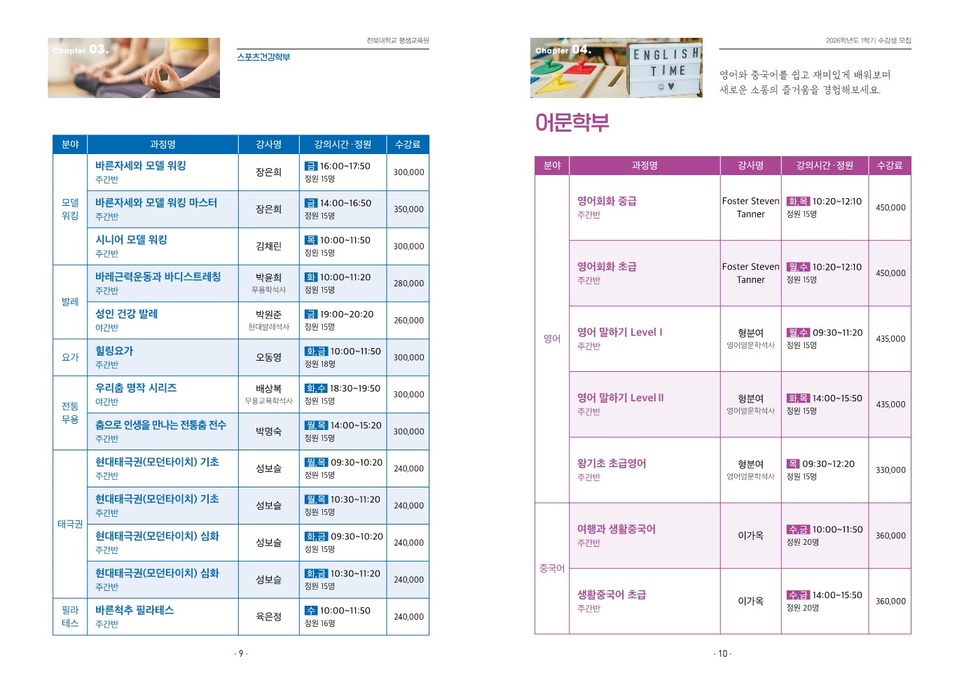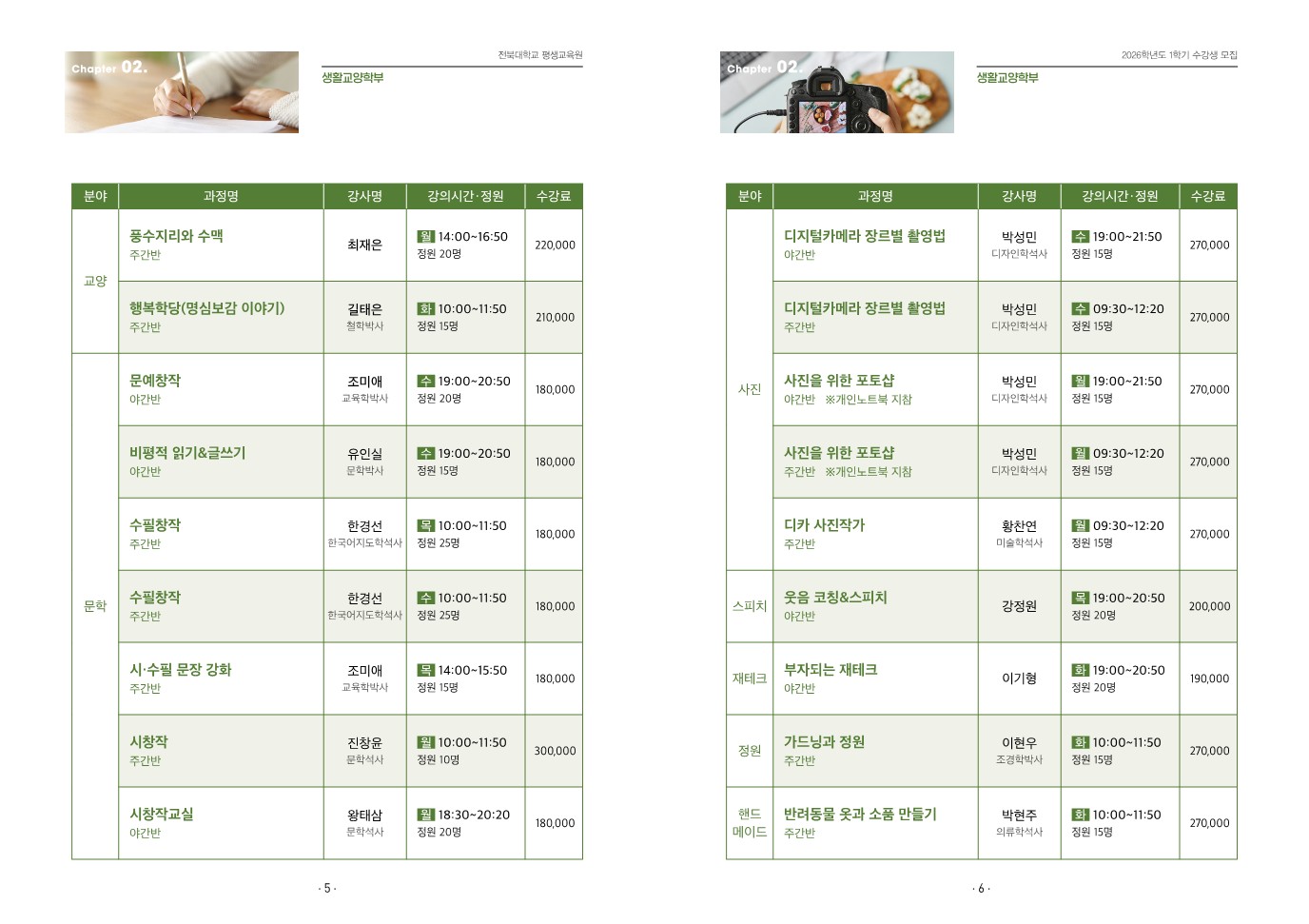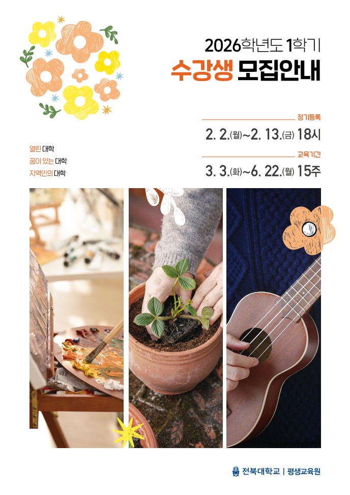 2026학년도 1학기(봄) 수강생 모집을 붙임과 같이 안내합니다.
