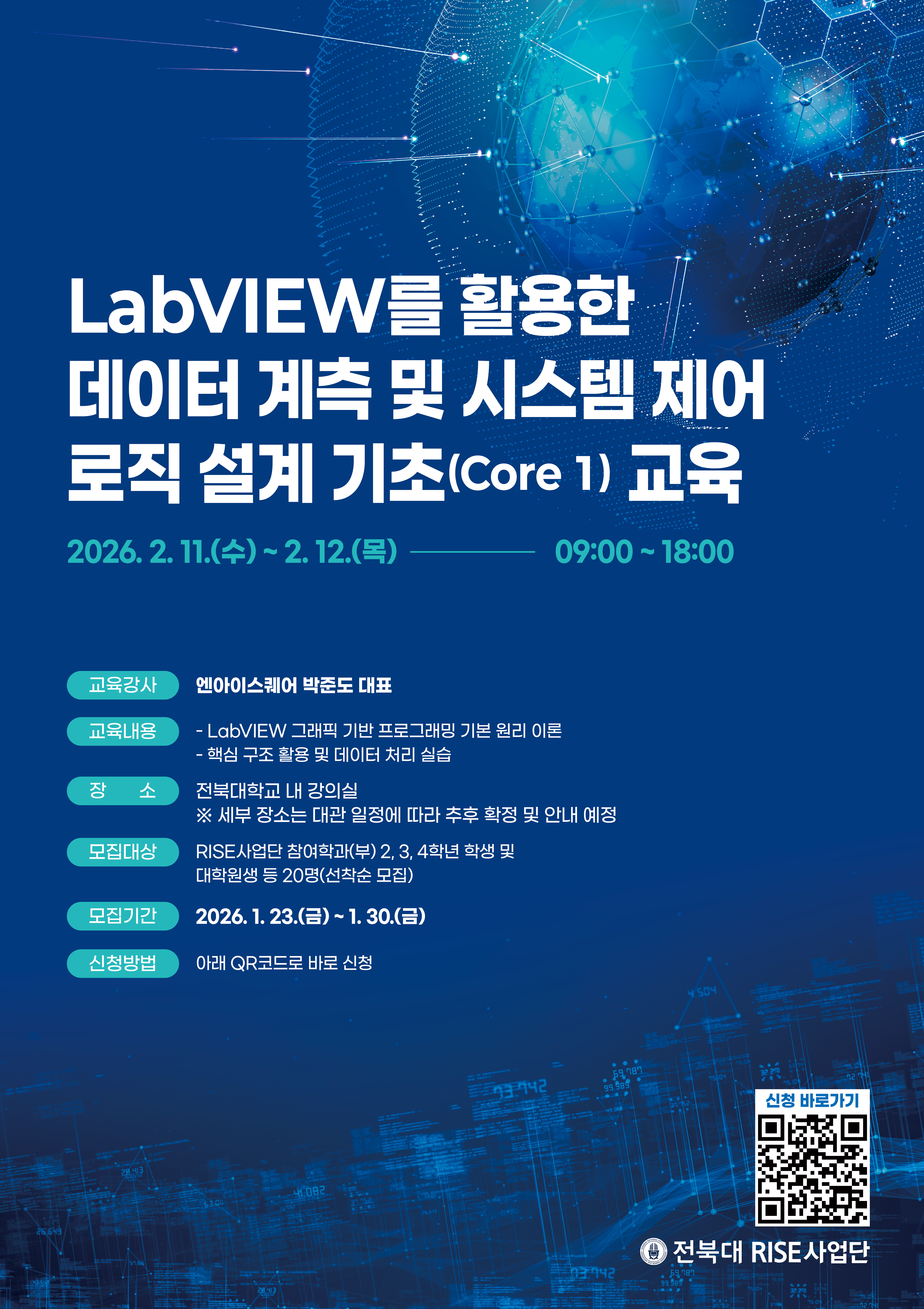 [RISE사업단] (신청기간 연장) LabVIEW를 활용한 데이터 계측 및 시스템 제어 로직 설계 기초(Core1)교육 모집