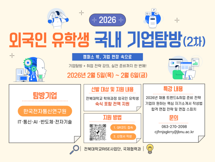 문의: 국제협력과 ☎ 063-270-2098 / ✉️ cjfrnjsgkrry@jbnu.ac.kr