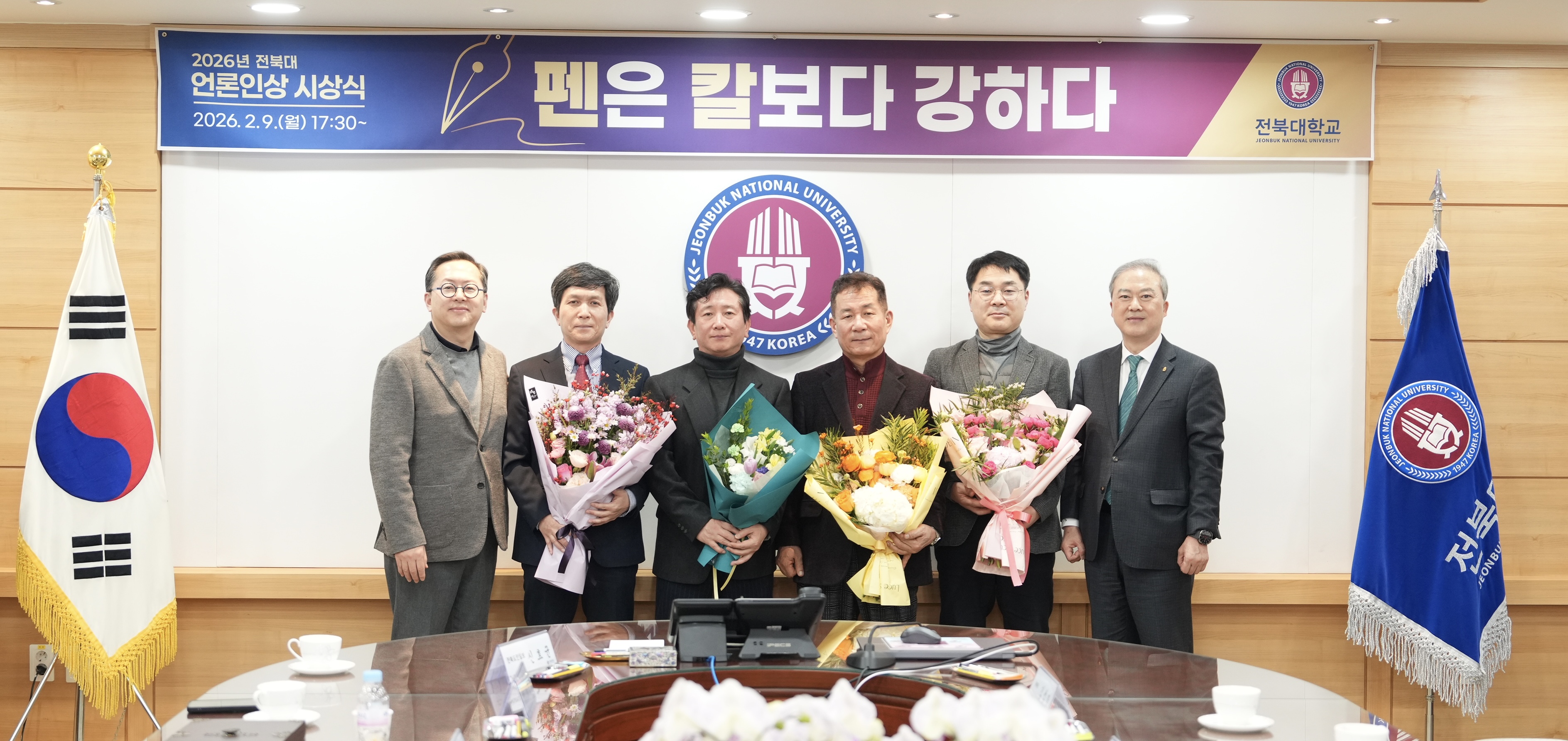 전북대학교와 전북대언론인회(회장 이창익)가 언론인의 사명과 정론직필을 실천해 온 동문 언론인을 대상으로 수여하는 2026년 전북대언론인상 시상식이 2월 9일 오후 5시 30분 전북대학교에서 열렸다.