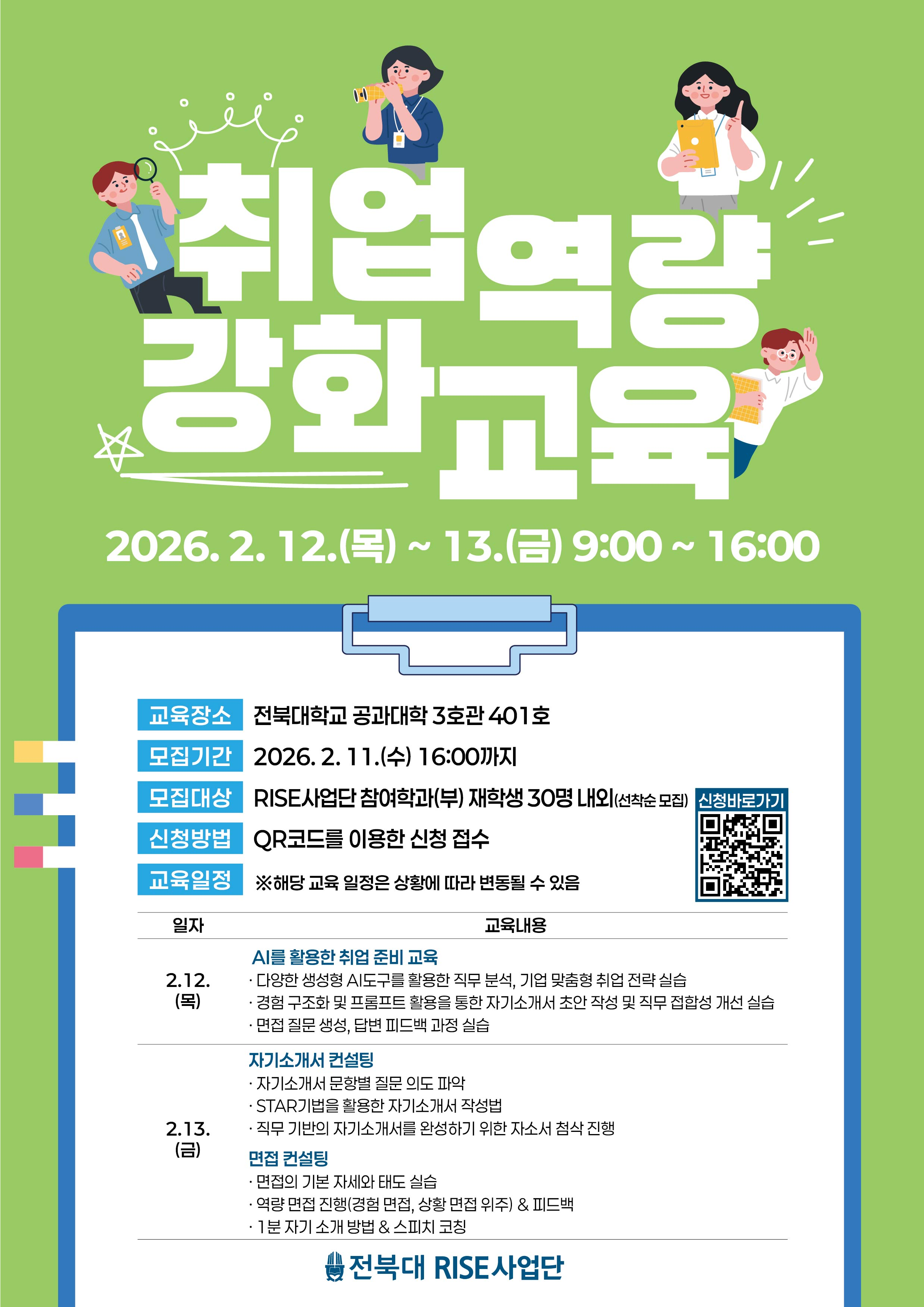 [RISE 사업단] AI와 함께 설계하는 입사지원서 작성과 면접 특강 모집(기간연장: 1/12(목) 11:00까지)