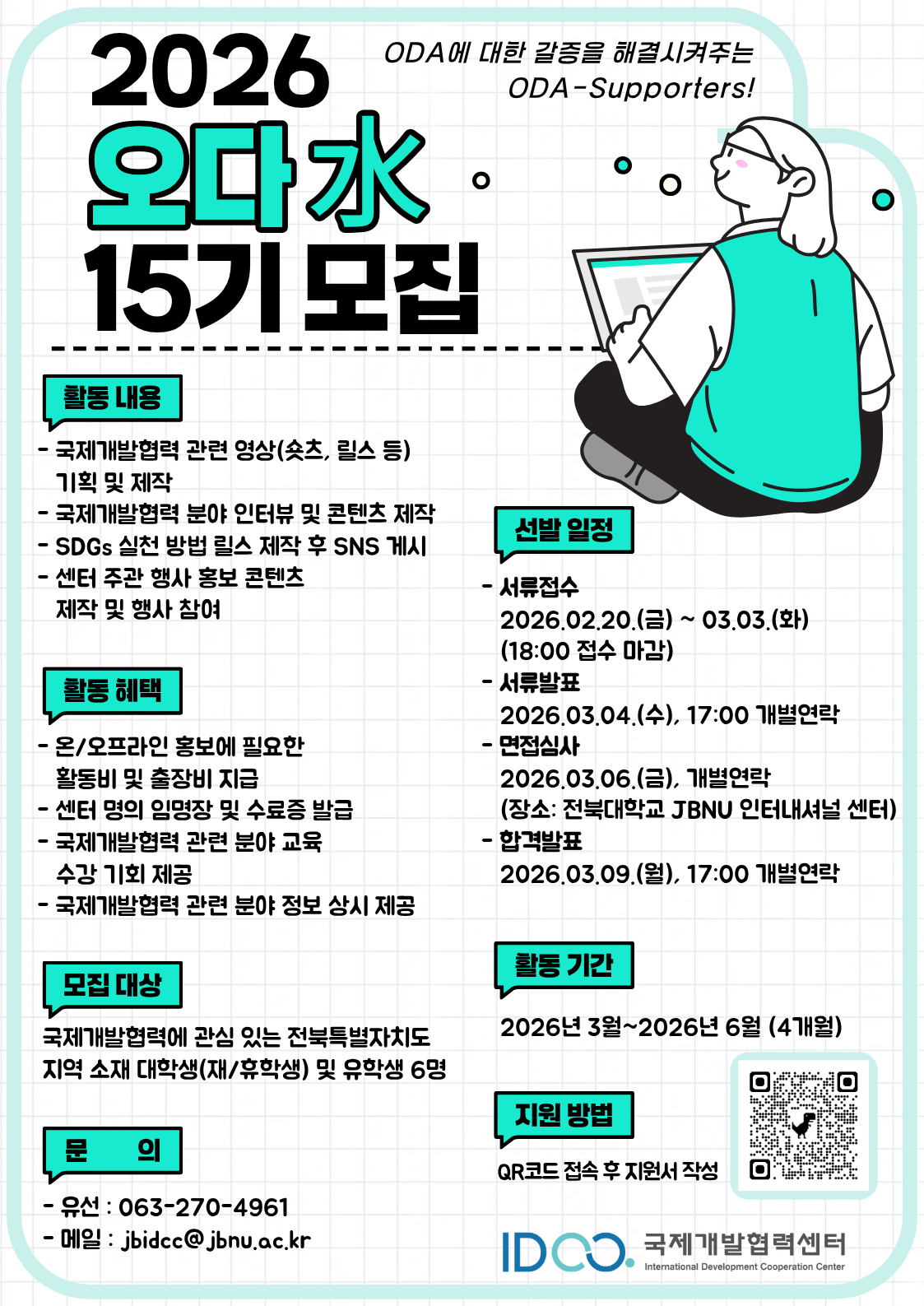 전북국제개발협력센터에서 2026년 상반기 전북지역 대학생 ODA 홍보단 ODASU(水) 15기를 모집합니다!