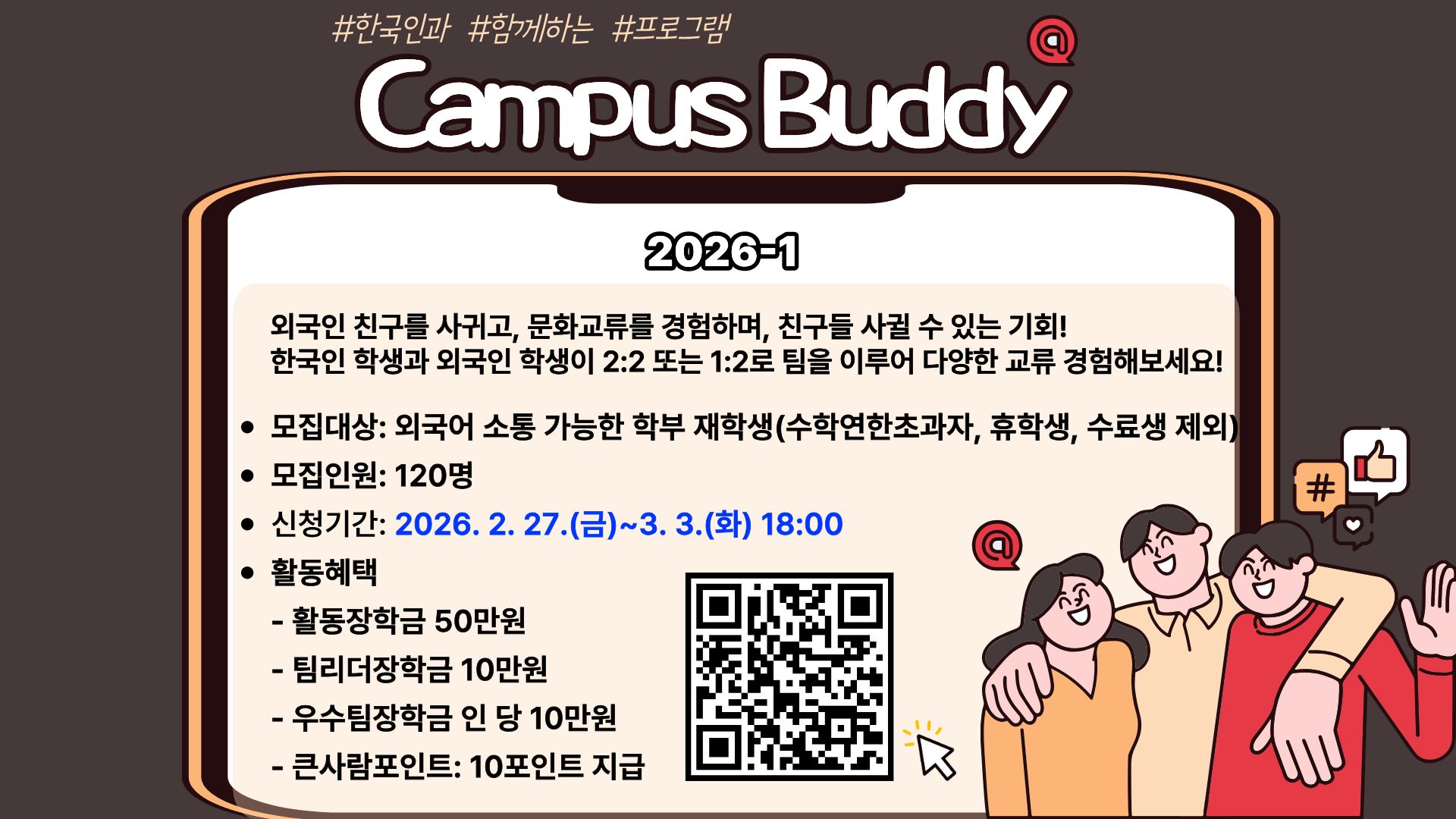 2026학년도 1학기 JBNU Campus Buddy 참가자를 아래와 같이 모집합니다.