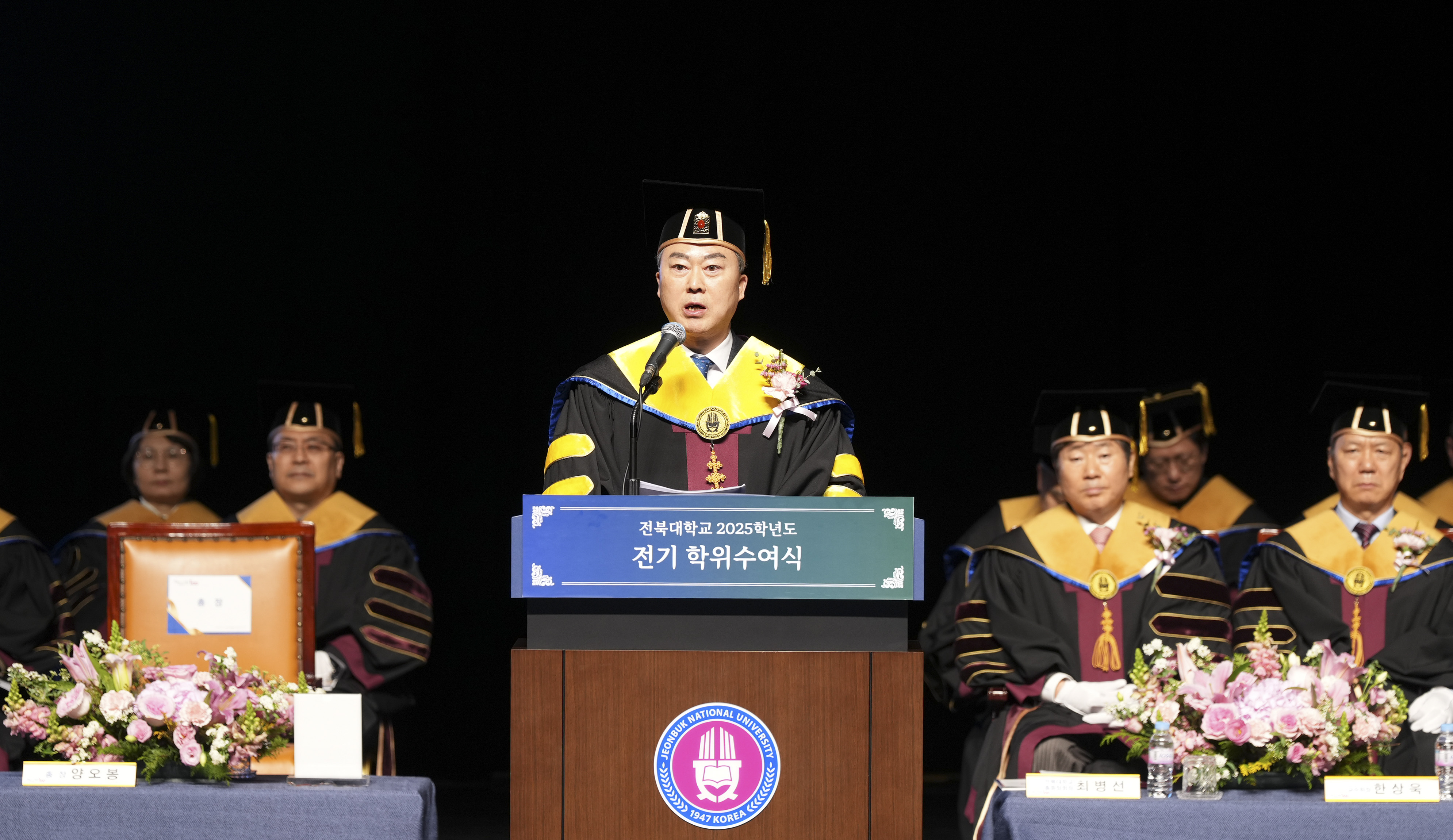 양 총장은 또 “전북대학교는 1947년 개교 이래 지역과 국가 발전을 선도해 왔으며, 최근에도 대형 국책사업 유치와 교육·연구 혁신을 통해 세계적 대학으로 도약하고 있다”며 “여러분은 전북대학교의 역사이자 성과 그 자체”라고 강조했다.