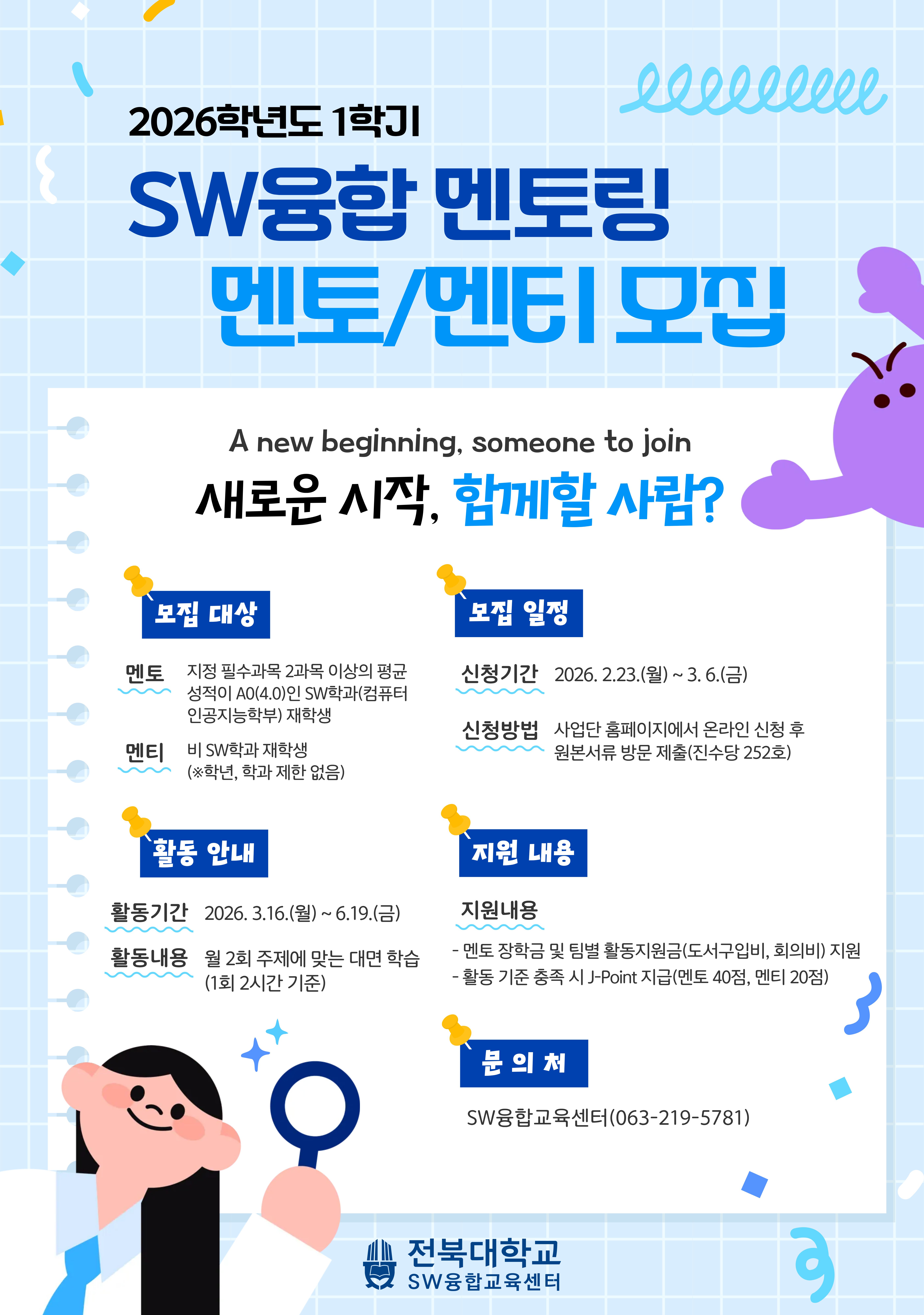 [SW융합교육센터] 2026학년도 1학기 SW융합 멘토링 프로그램 멘토/멘티 모집 안내 (~3.6.(금)까지)