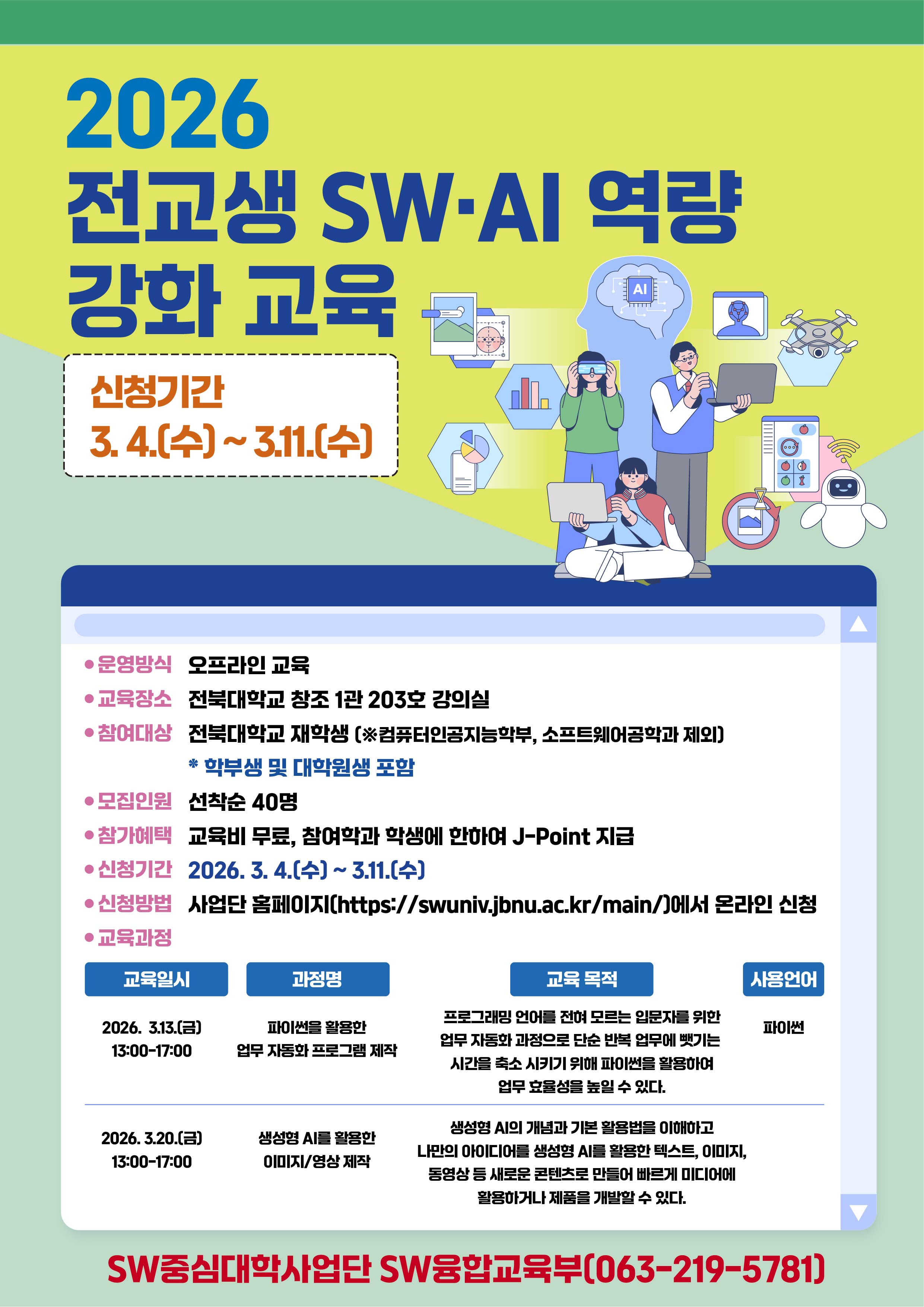 ○ 문 의 처: SW중심대학사업단 융합교육부(063-219-5781)