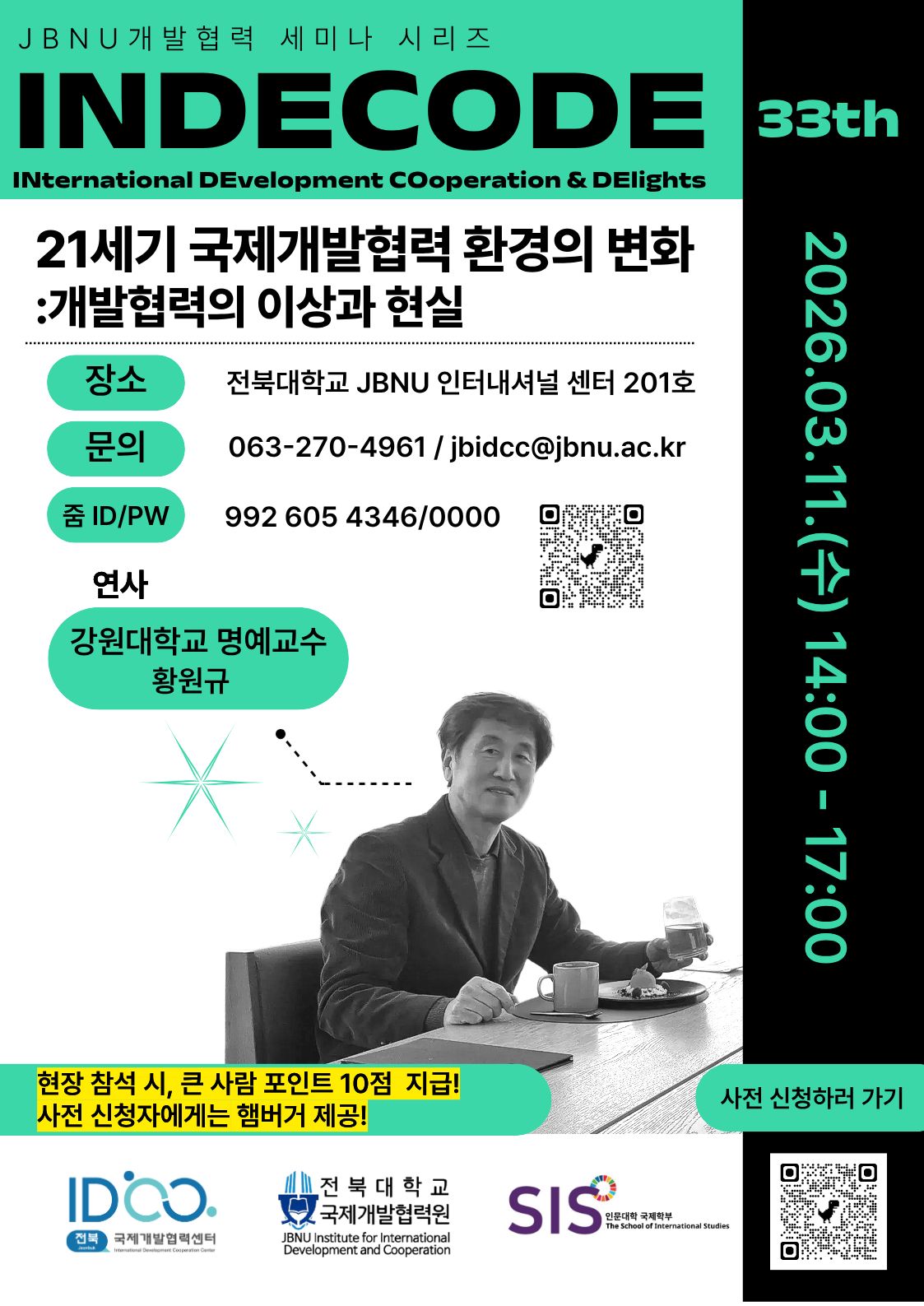[전북국제개발협력센터] 제33차 JBNU 개발협력 세미나 (인디코드) : 21세기 국제개발협력 환경의 변화 :개발협력의 이상과 현실 (현장참석 시 큰사람포인트 10점 지급)