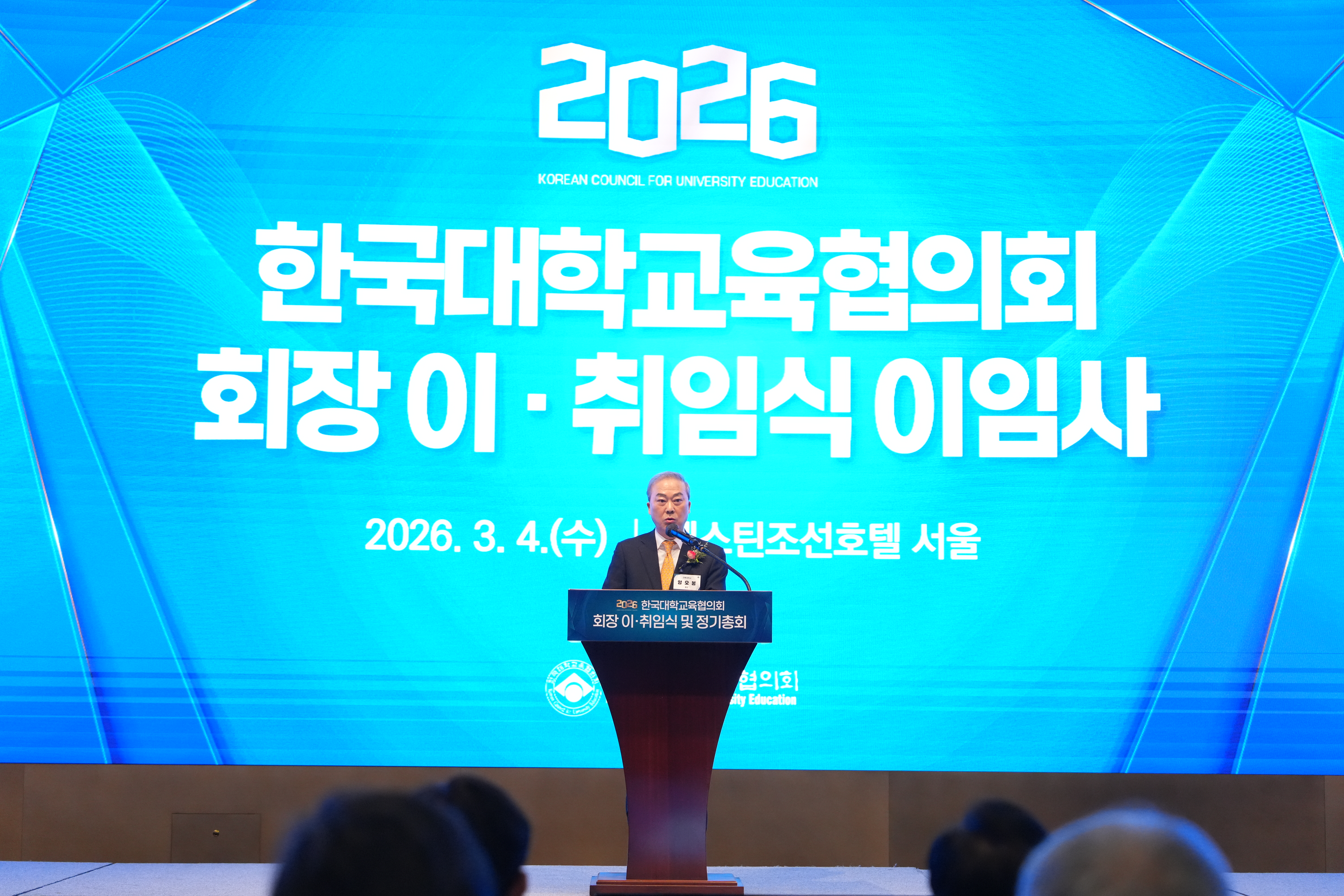 이날 행사에는 전국 196개 4년제 대학 중 129개교 총장을 비롯해 김영호 국회 교육위원장, 차정인 국가교육위원장 등 교육계 주요 인사들이 대거 참석해 양 회장의 그간 노고에 박수를 보냈다. 행사는 김영호 위원장과 차정인 위원장의 현장 축사, 최교진 교육부 장관의 영상 축사에 이어 양 회장의 이임사, 제30대 이기정 신임 회장(한양대 총장)의 취임사 순으로 진행됐다.