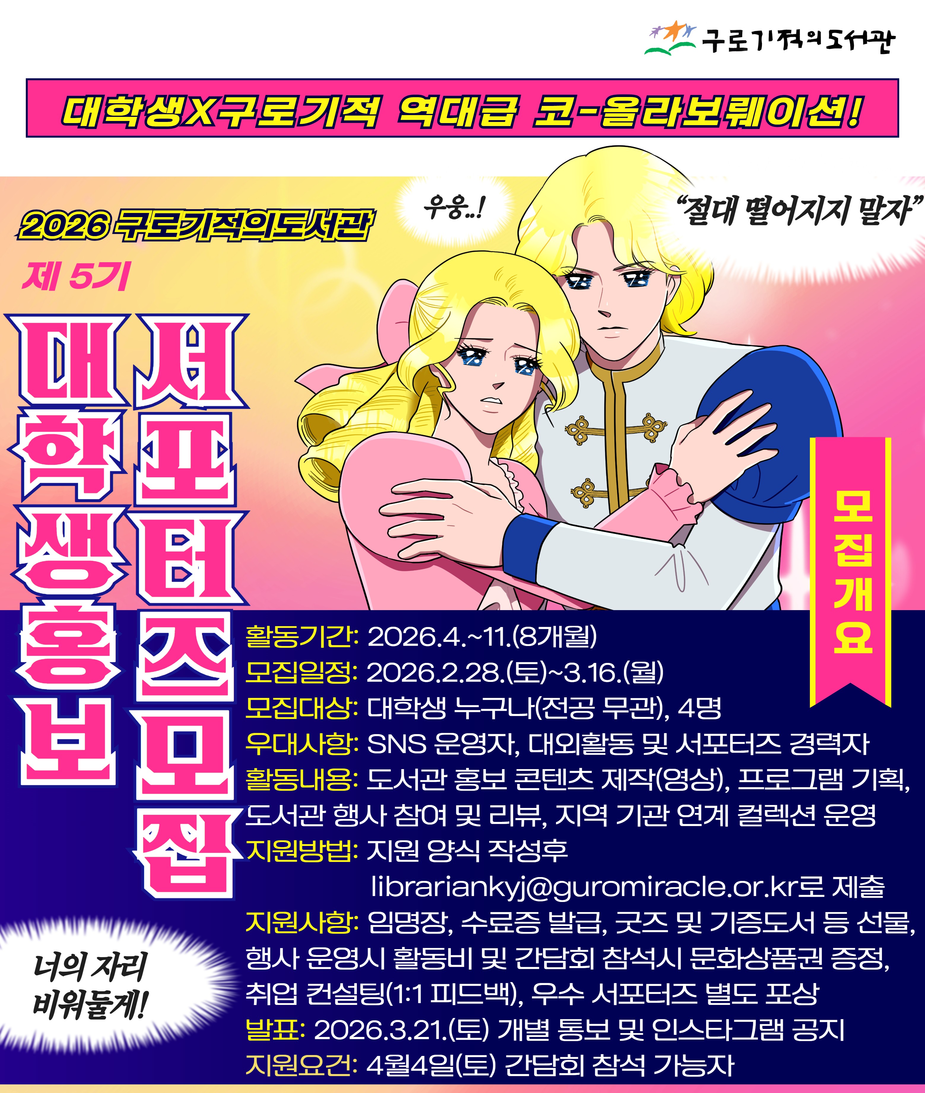 (구로기적의도서관) 2026 제5기 구로기적의도서관 대학생 홍보 서포터즈 모집 안내